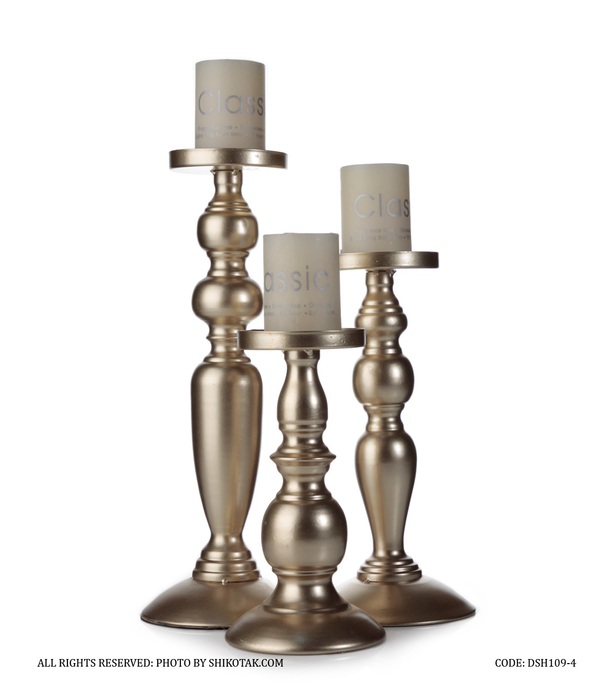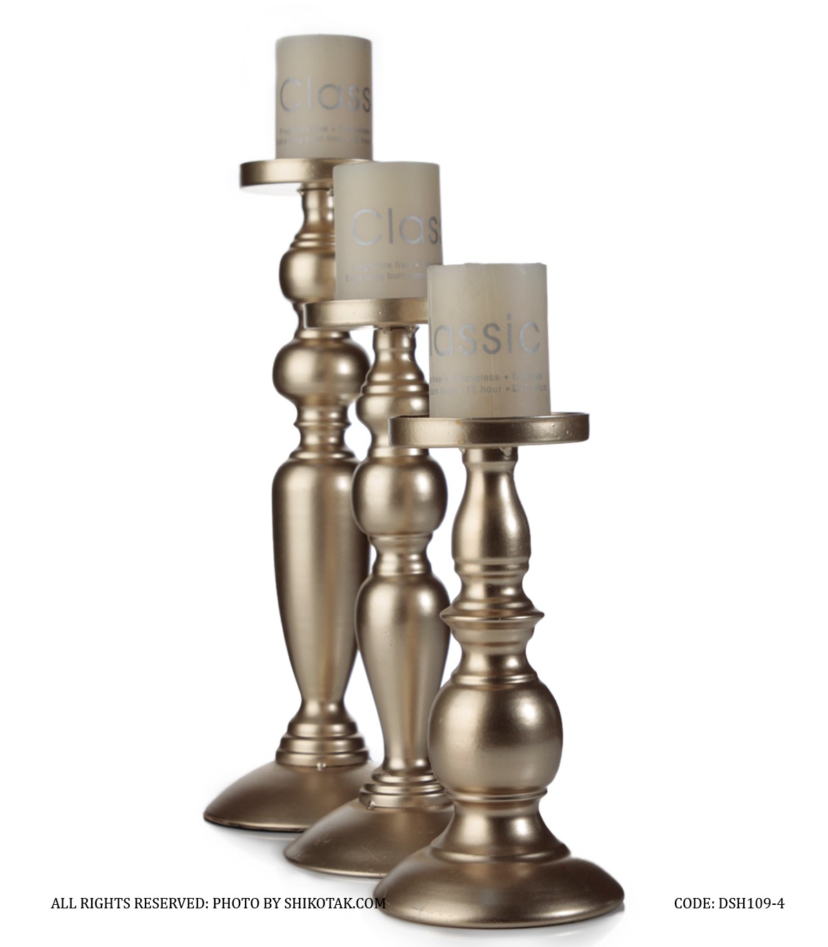 ست جاشمعی فلزی سه عددی رنگ برنزی