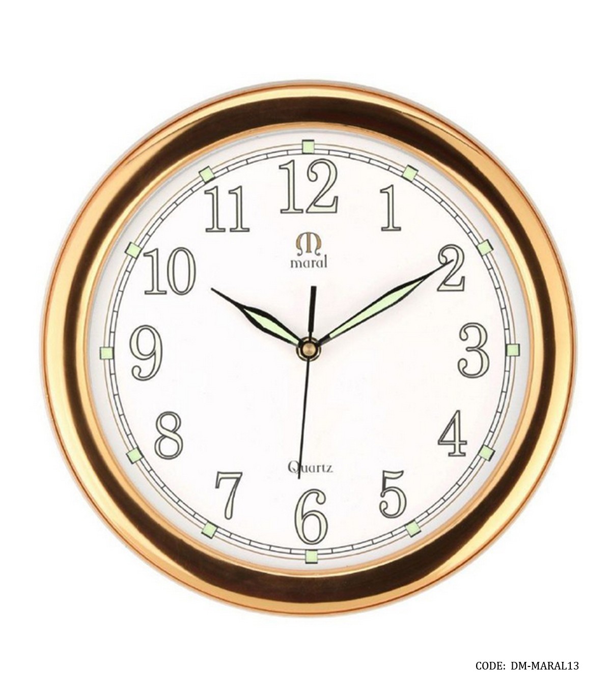 ساعت گرد دیواری قاب پلاستیکی مارال صفحه شب نما طلایی