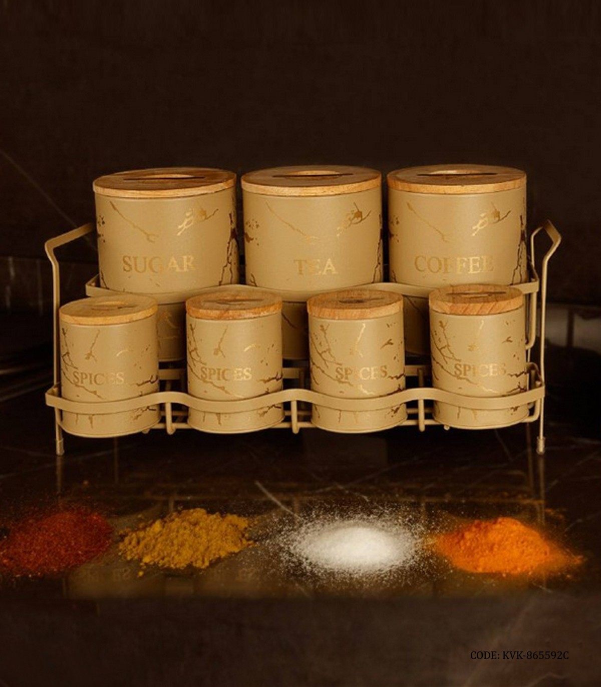 ست پاسماوری استند دار فلزی ۱۵ تکه BVK طرح Marble کرم