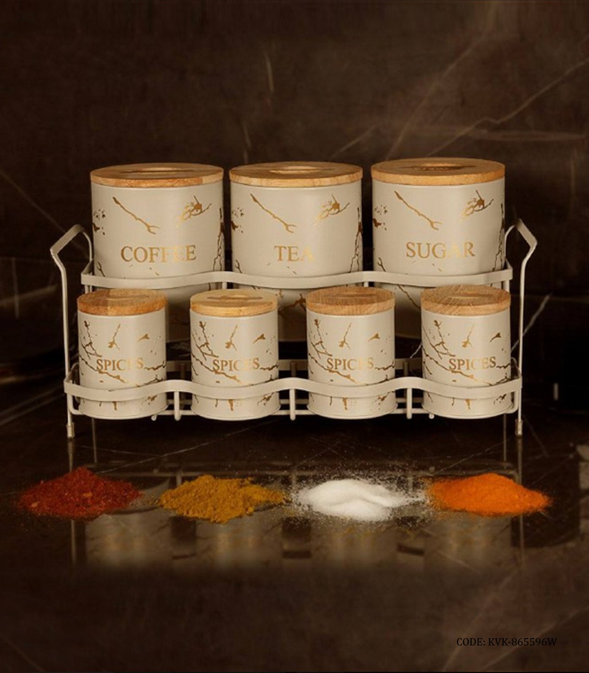 ست پاسماوری استند دار فلزی ۱۵ تکه BVK طرح Marble سفید