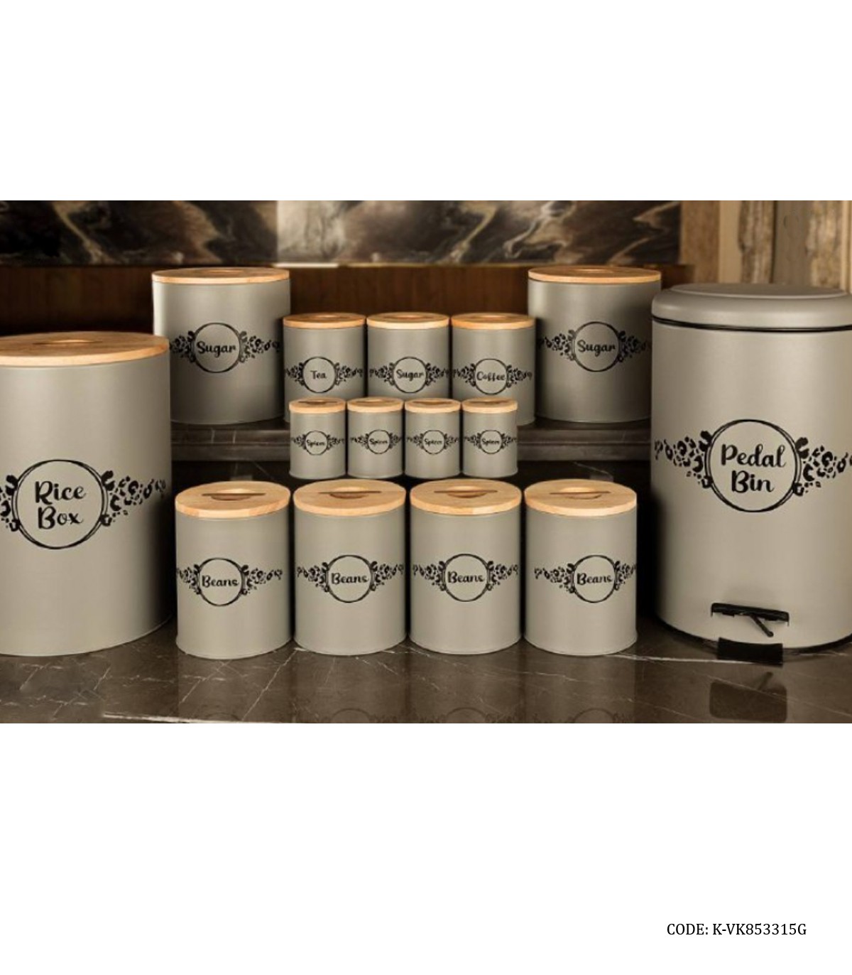 - شامل یک عدد سطل برنج، یک عدد سطل زباله، یک عدد سطل قند، یک عدد سطل شکر، یک عدد ظرف چایی، شش عدد ظرف حبوبات، چهار عدد ظرف ادویه
