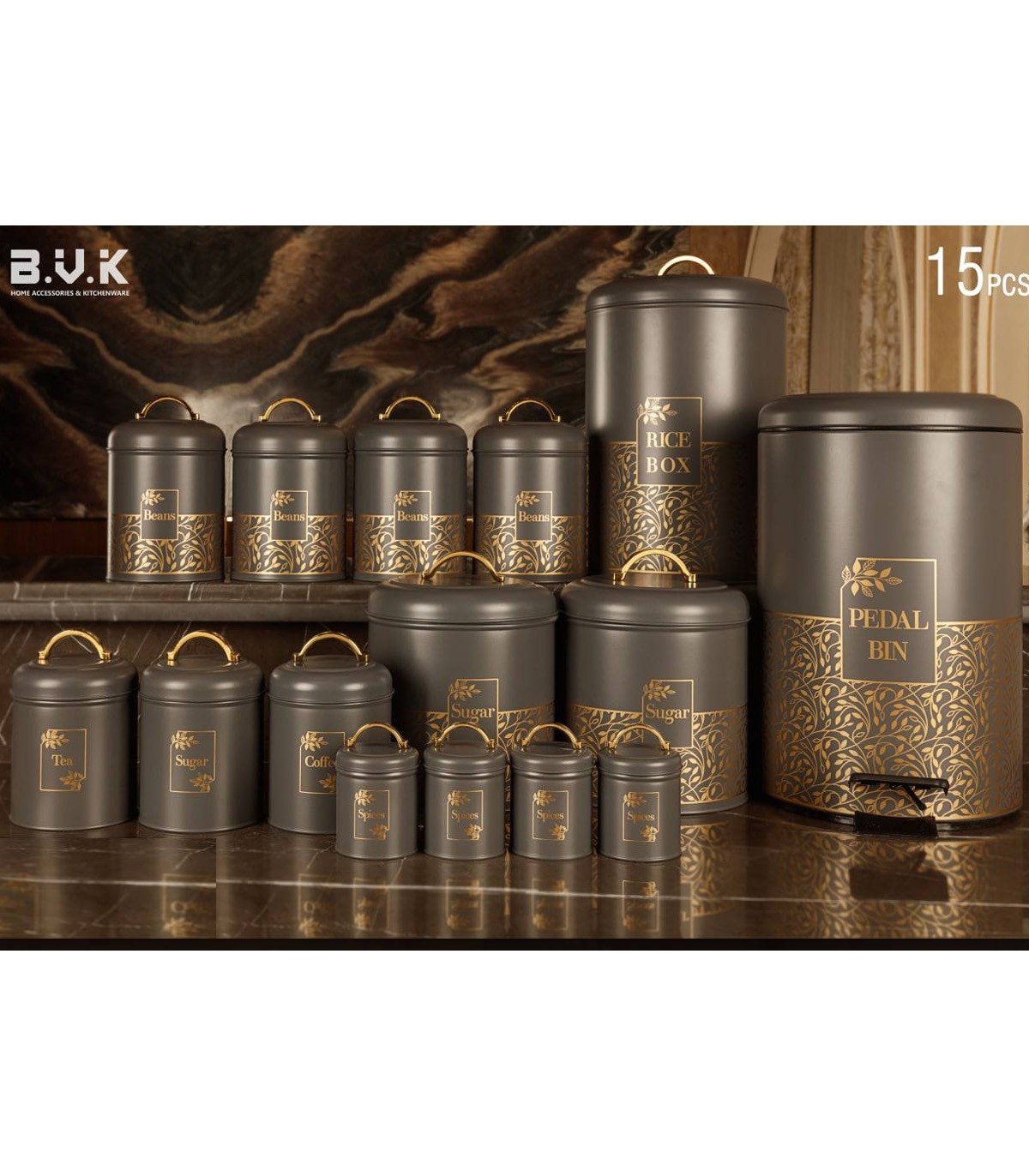 - شامل یک عدد سطل برنج، یک عدد سطل زباله، یک عدد سطل قند، یک عدد سطل شکر، یک عدد ظرف چایی، شش عدد ظرف حبوبات، چهار عدد ظرف ادویه