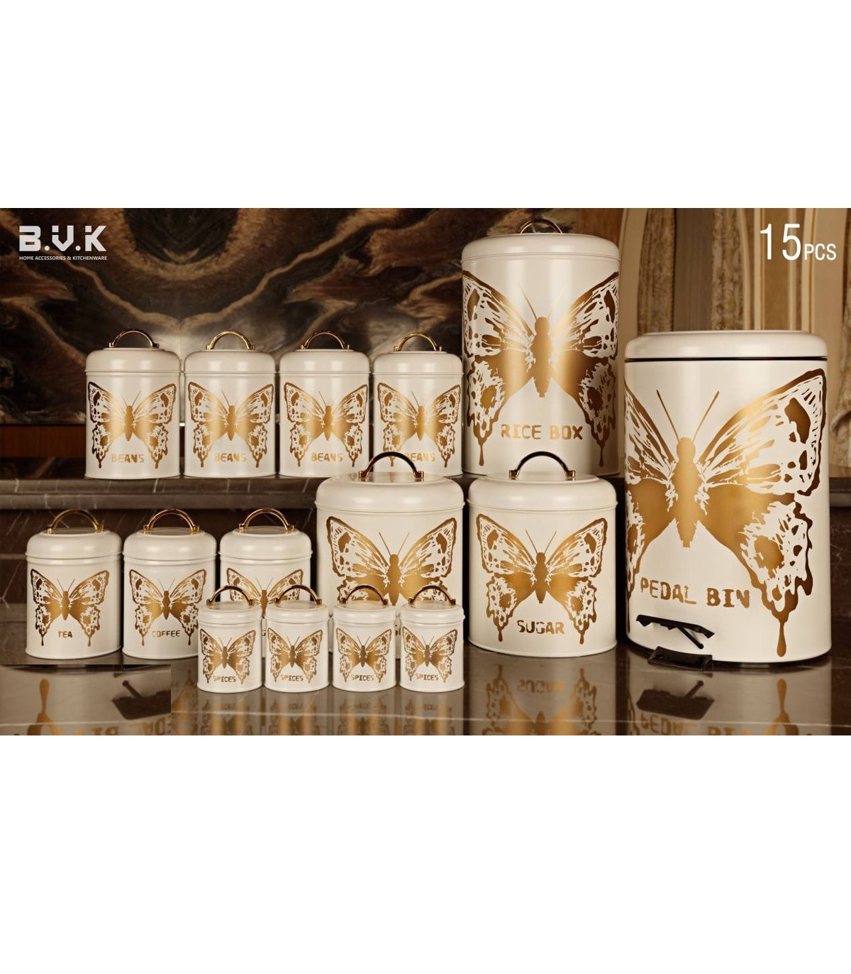 - شامل یک عدد سطل برنج، یک عدد سطل زباله، یک عدد سطل قند، یک عدد سطل شکر، یک عدد ظرف چایی، شش عدد ظرف حبوبات، چهار عدد ظرف ادویه
