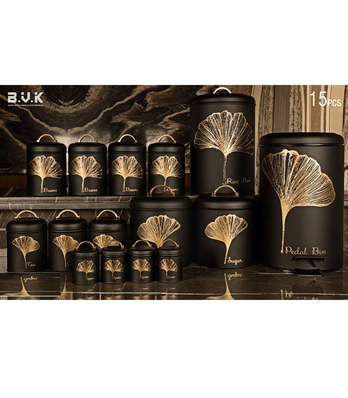 سرویس آشپزخانه بانکه ۱۵ عددی مشکی طلایی مدل NOBLE BLACK