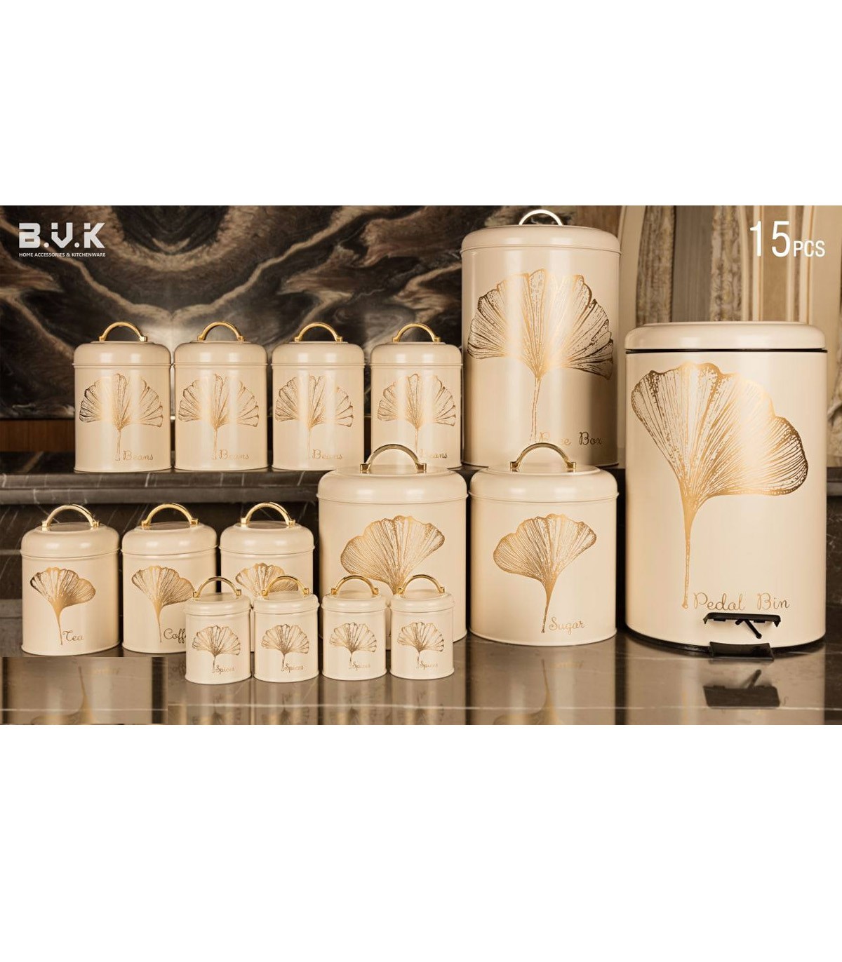 - شامل یک عدد سطل برنج، یک عدد سطل زباله، یک عدد سطل قند، یک عدد سطل شکر، یک عدد ظرف چایی، شش عدد ظرف حبوبات، چهار عدد ظرف ادویه