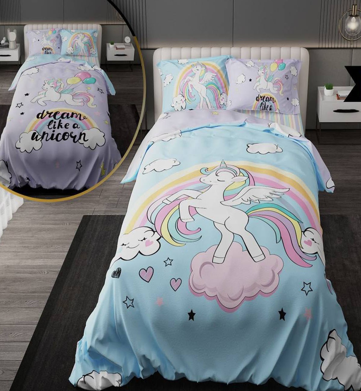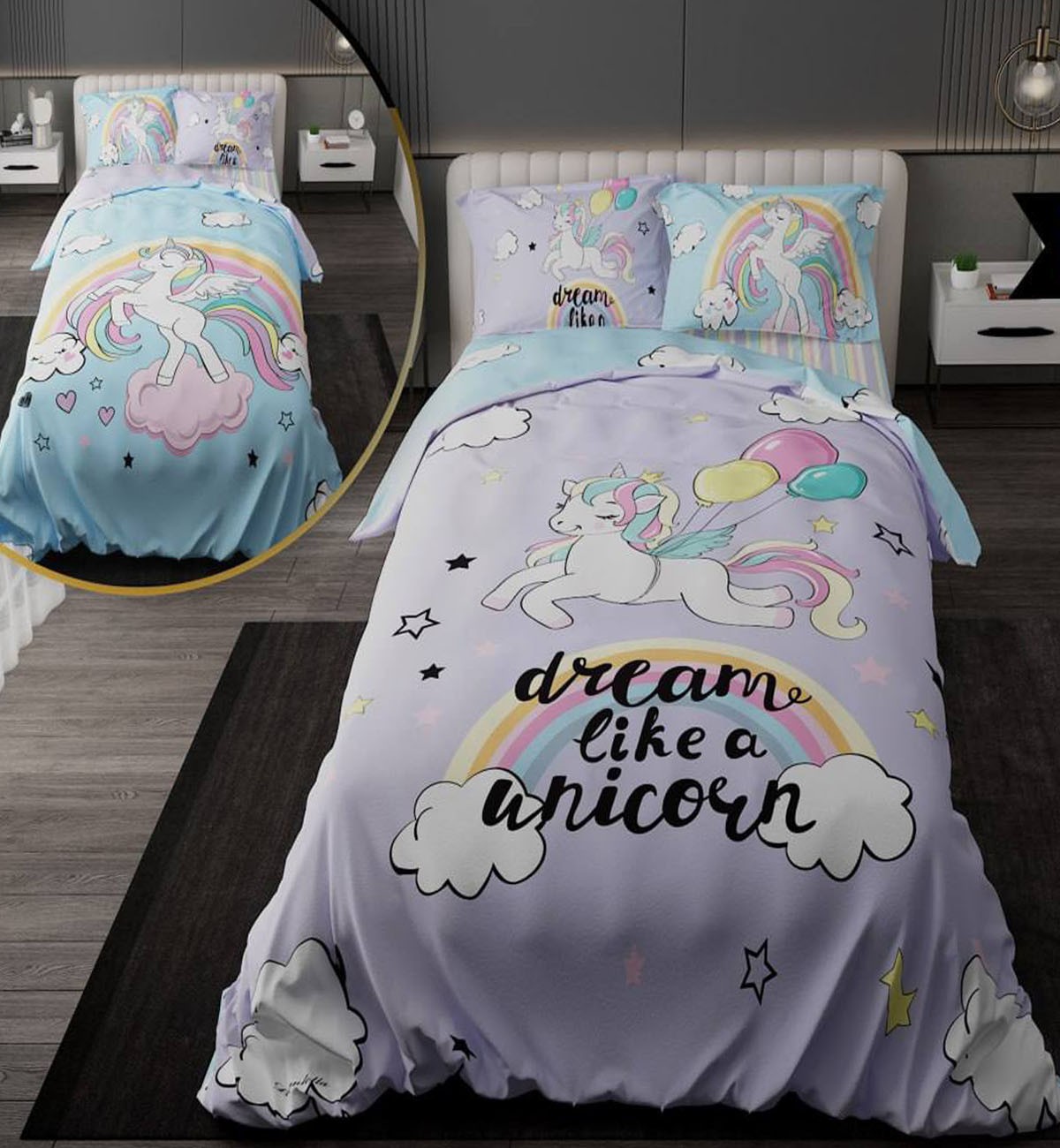سرویس روتختی نوجوان دخترانه با لحاف دورویه طرحدار طرح یونی کورن