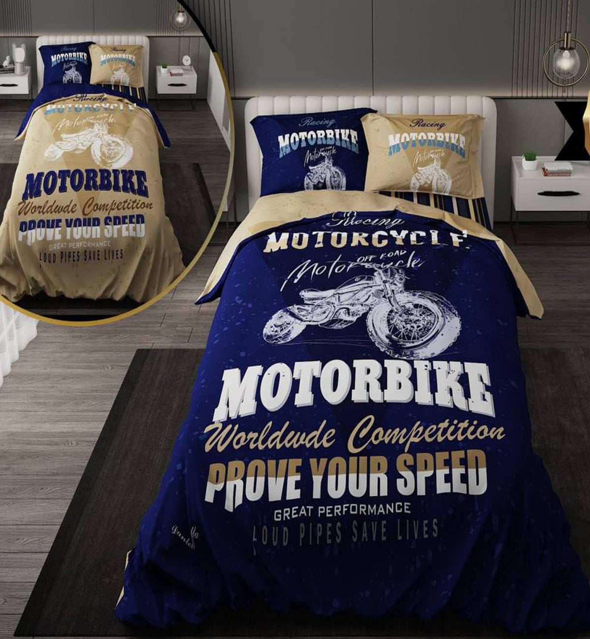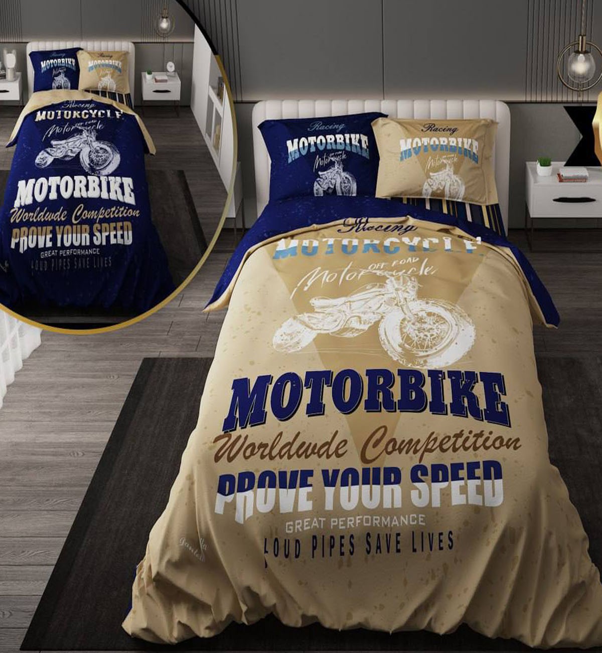 سرویس روتختی نوجوان پسرانه با لحاف دورویه طرحدار طرح موتورسیکلت