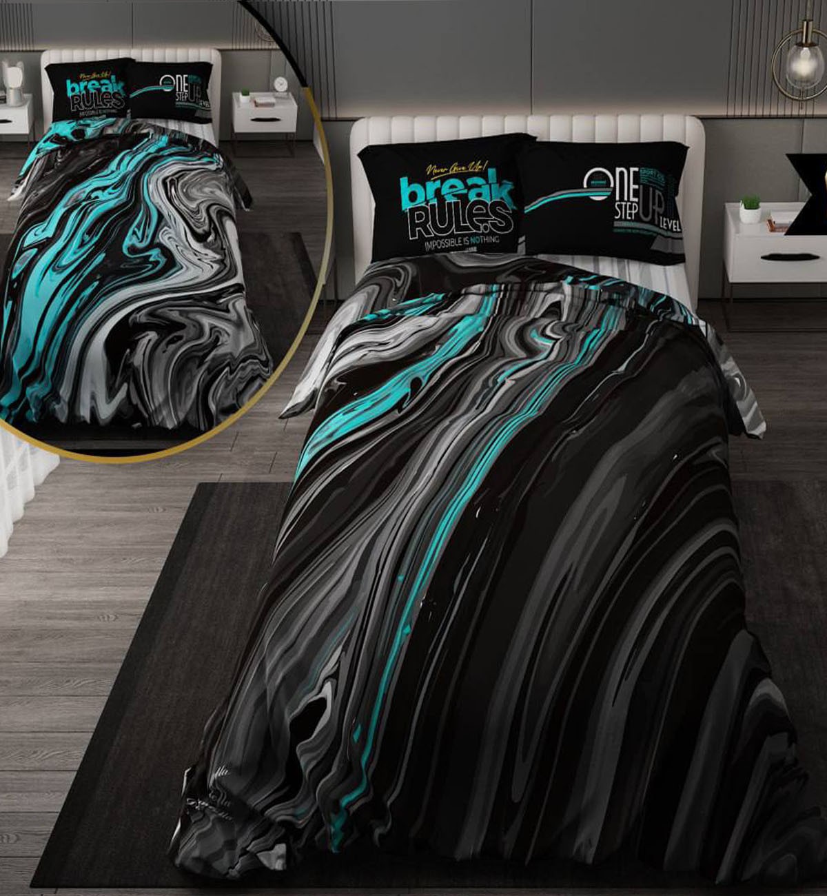 سرویس روتختی نوجوان پسرانه و دخترانه با لحاف دو رویه طرحدار طرح ماربل سبز
