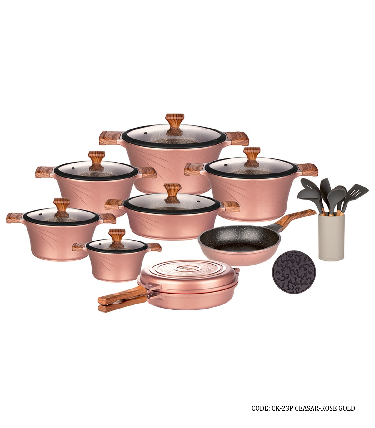 سرویس قابلمه گرانیتی ۲۳ پارچه کاندید مدل سزار رنگ رزگلد