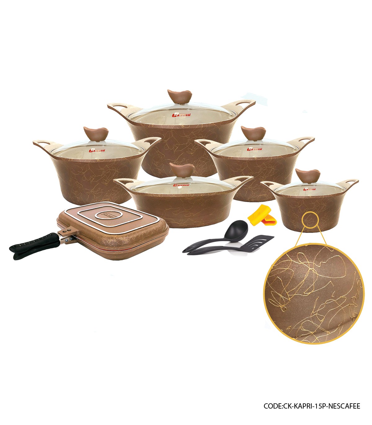 سرویس قابلمه ۱۵ پارچه گرانیتی کاپری مدل نسکافه ای