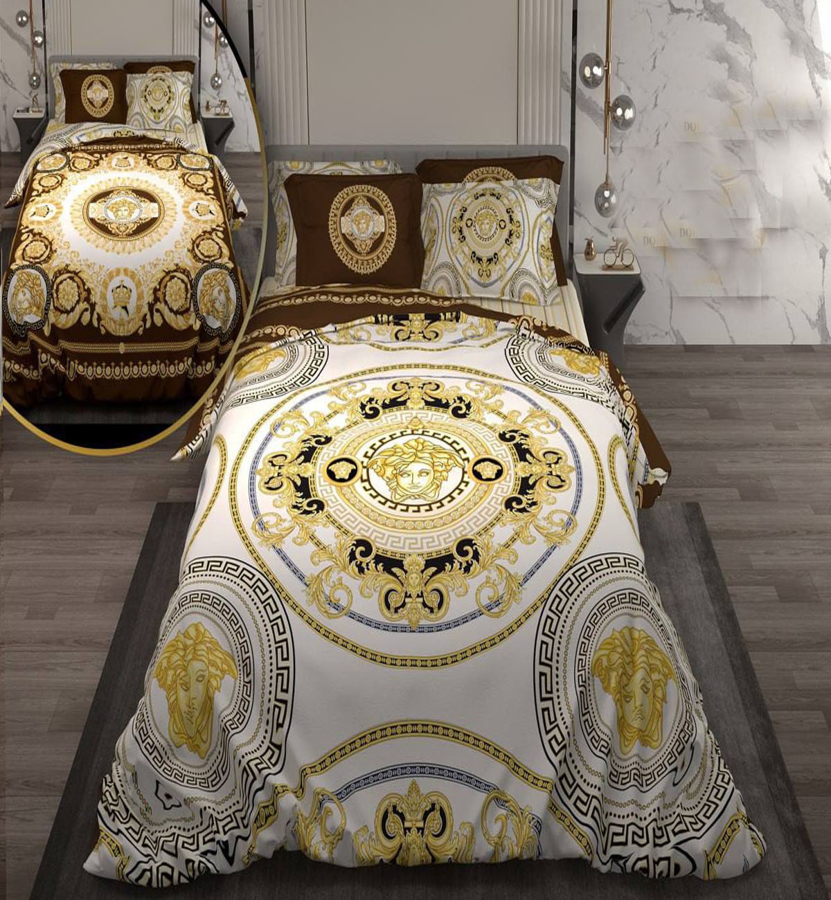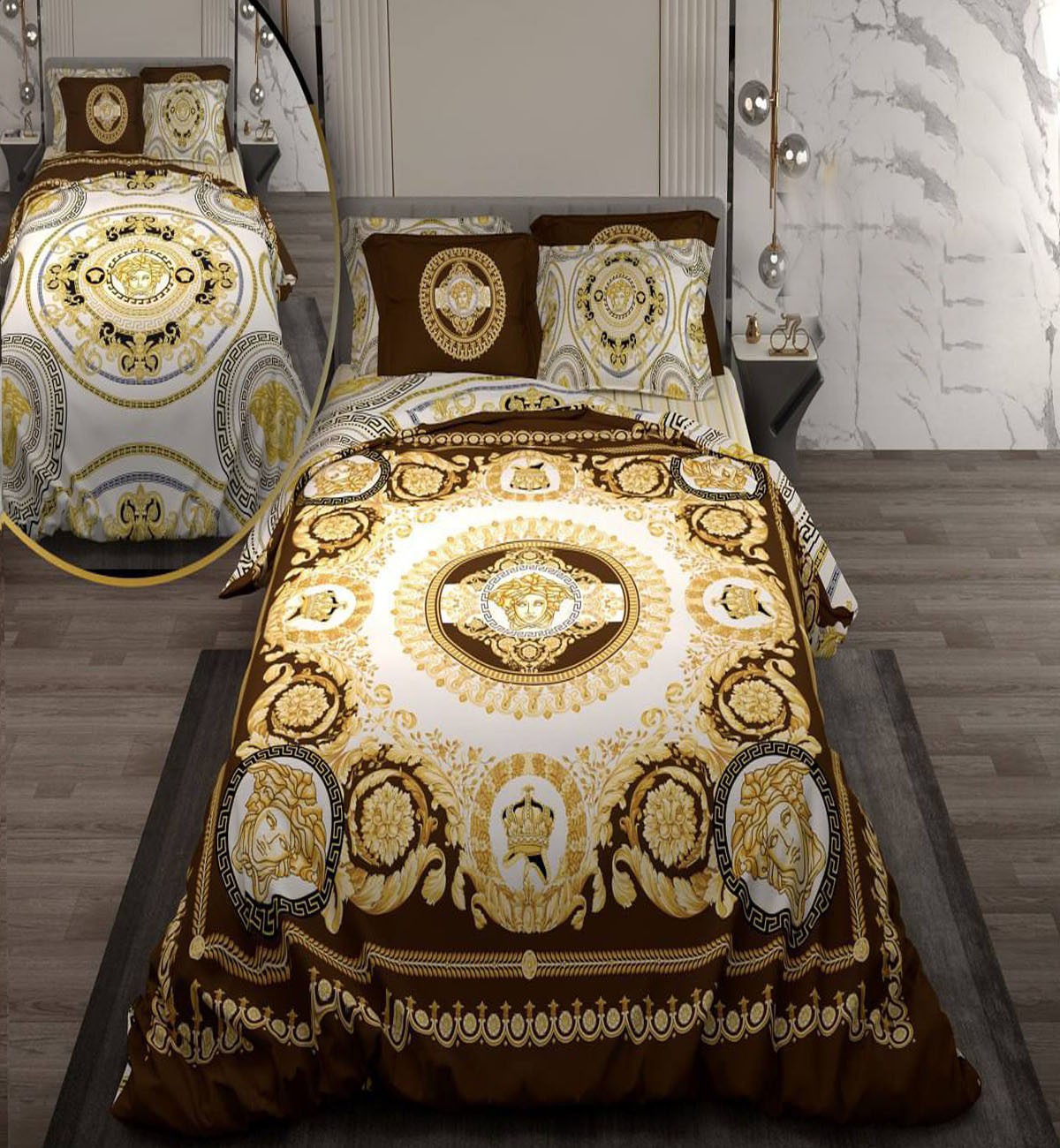 سرویس لحاف روتختی دو نفره دورویه طرحدار طرح کلاسیک ورساچه