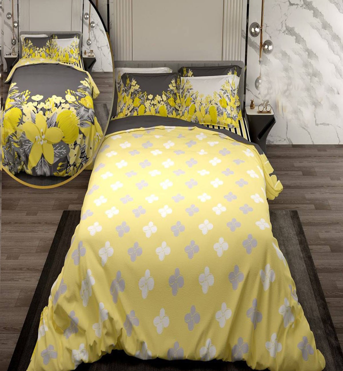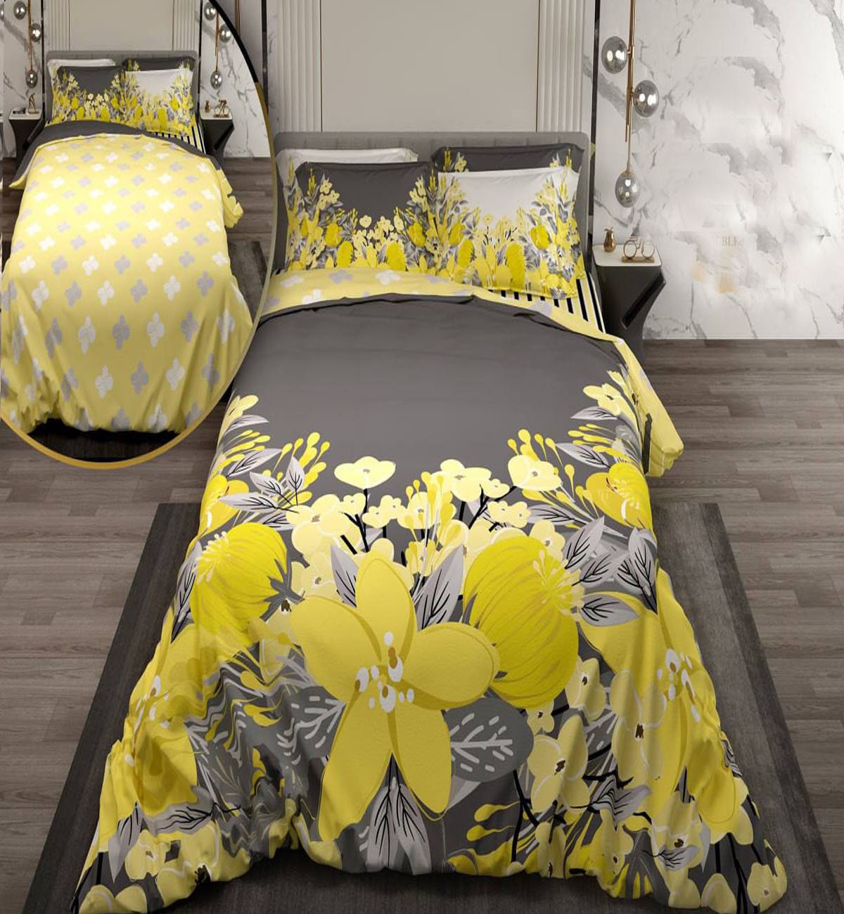 سرویس لحاف روتختی دو نفره دورویه طرحدار طرح گل زرد