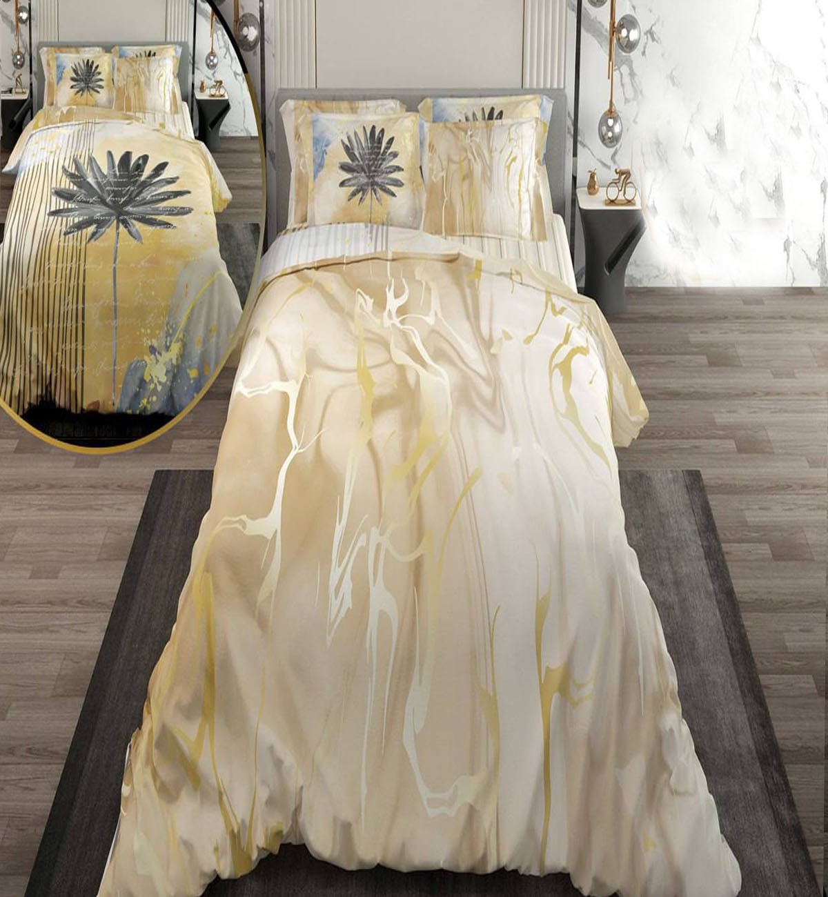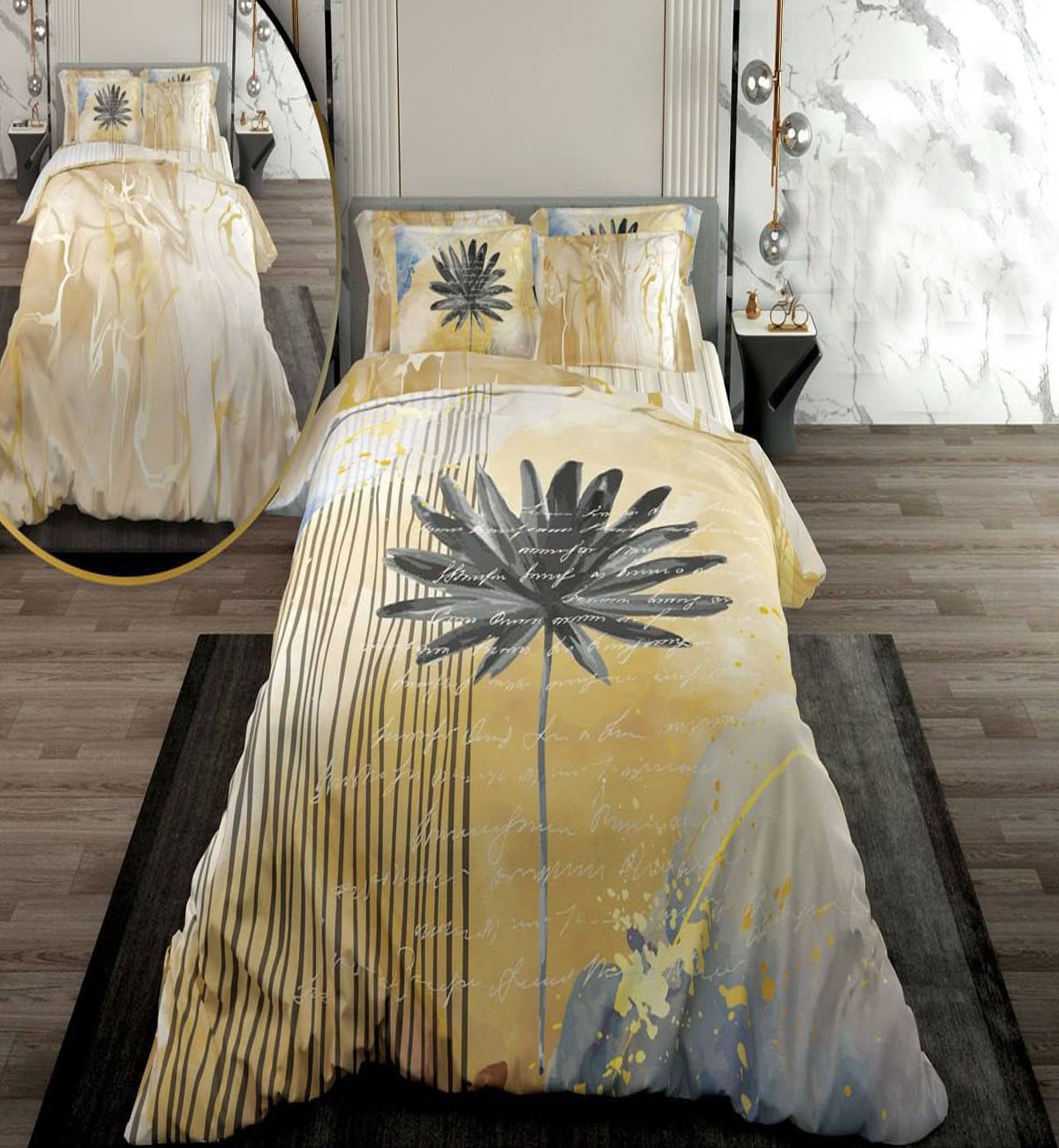 سرویس لحاف روتختی دو نفره دورویه طرحدار طرح برگ نخل