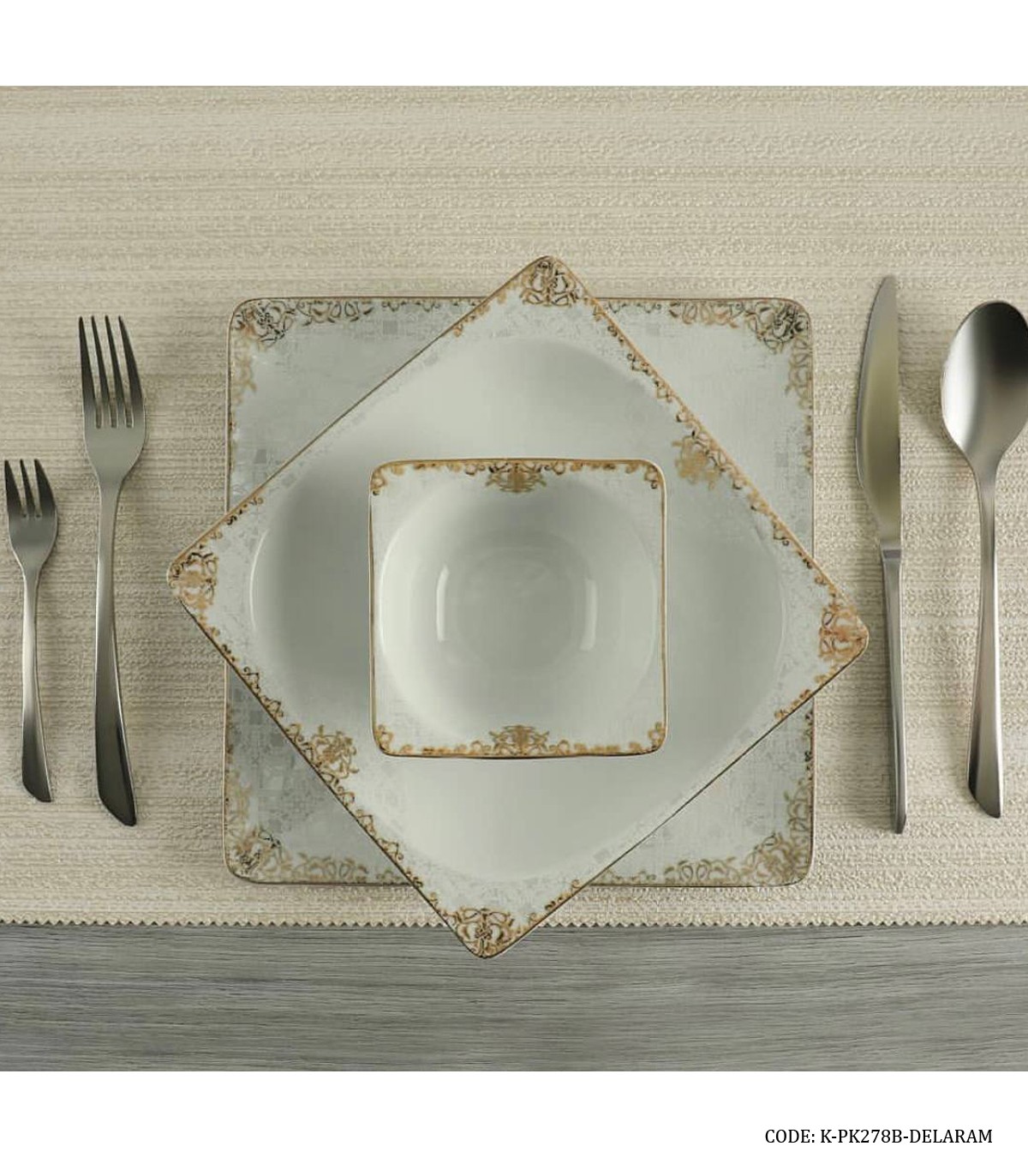 - شامل 12 عدد پلوخوری، 12 عدد خورش خوری، 12 عدد میوه خوری (پیش دستی)، 12 عدد پیاله، 2 عدد دیس، 2 عدد کاسه بزرگ، 6 عدد نمکدان، 1 عدد سوپ خوری همراه با در، 12 عدد فنجان و نعلبکی، 2 عدد قندان همراه با در، 2 عدد شکرریز، 1 عدد شیر خوری همراه با درب، 1عدد کفگیر، 6عدد حلقه دستمال، 2عدد جادستمالی