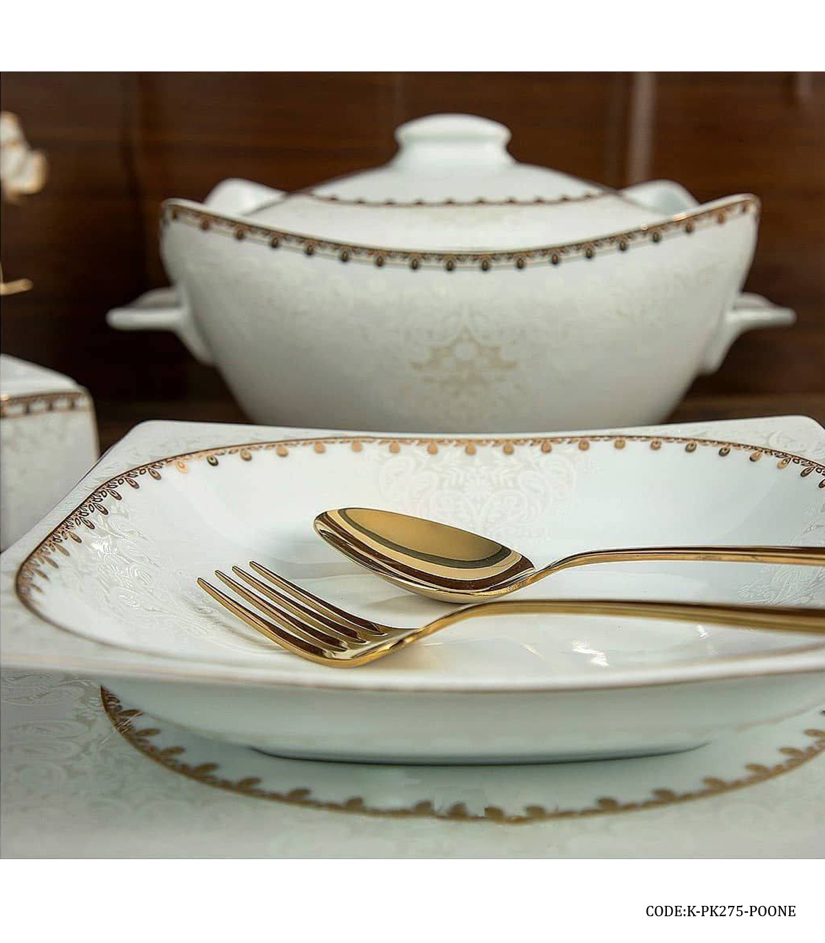 - شامل 6 عدد پلوخوری، 6 عدد خورش خوری، 6 عدد میوه خوری (پیش دستی)، 6 عدد پیاله، 2 عدد دیس، 1 عدد کاسه بزرگ، 2 عدد نمکدان، 1 عدد شکرریز