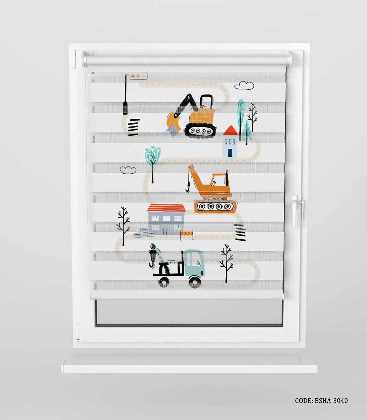 پرده زبرا اتاق کودک پسرانه طرح جرثقیل مدل Build