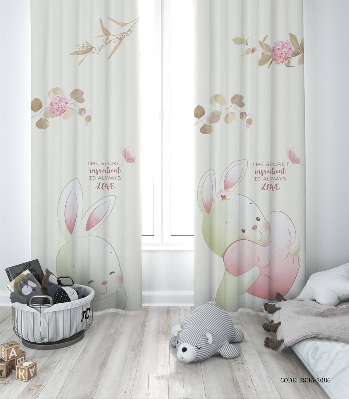 پرده پانچی دو تکه اتاق دخترانه طرح خرگوش مدل The secret of love