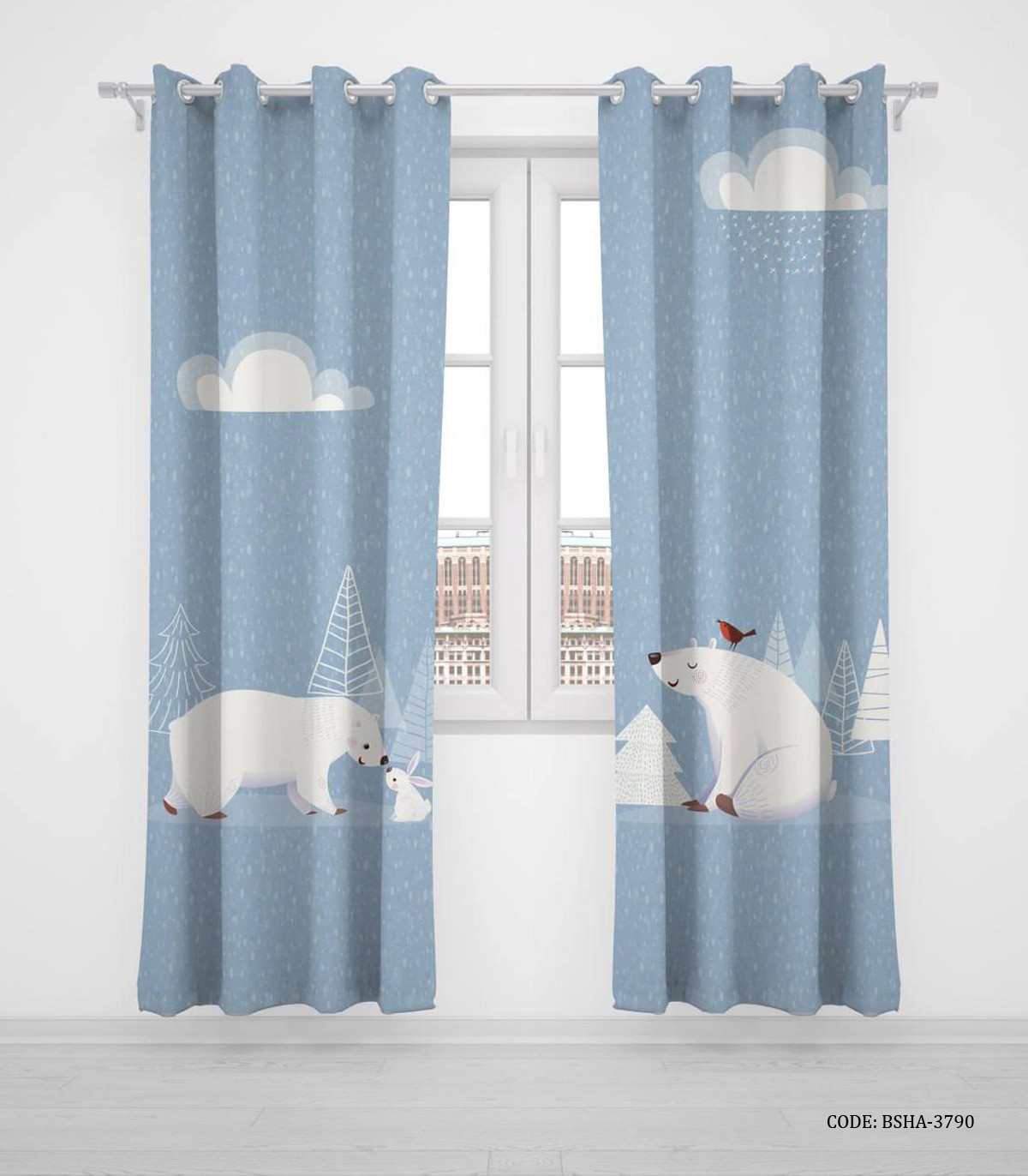 پرده پانچی دو تکه اتاق پسرانه طرح خرس قطبی و خرگوش سفید مدل In the Pole