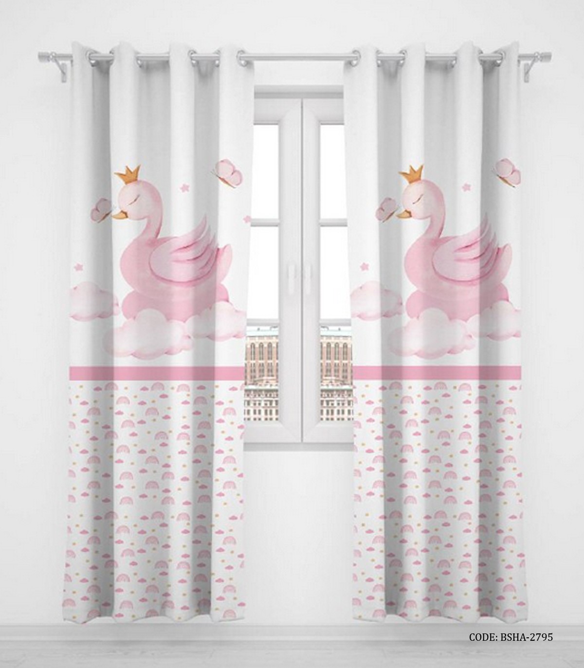 پرده پانچی دو تکه اتاق کودک دخترانه طرح قو مدل Lovely Swan