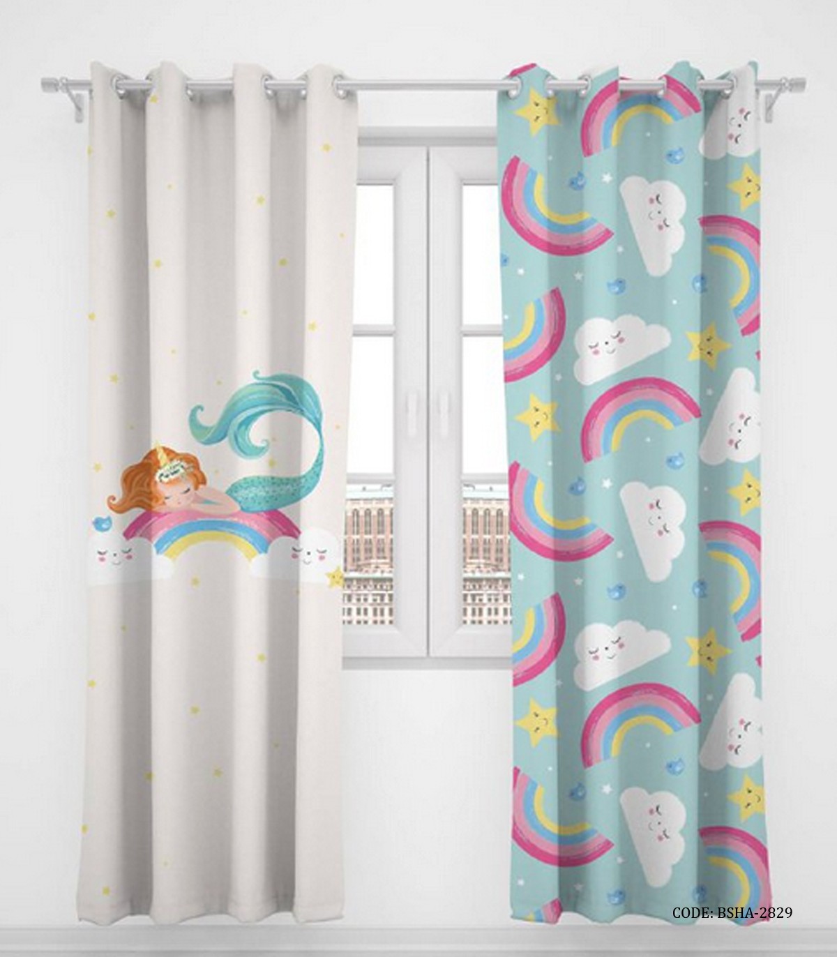 پرده پانچی دو تکه اتاق کودک دخترانه طرح پری دریایی مدل Mermaid