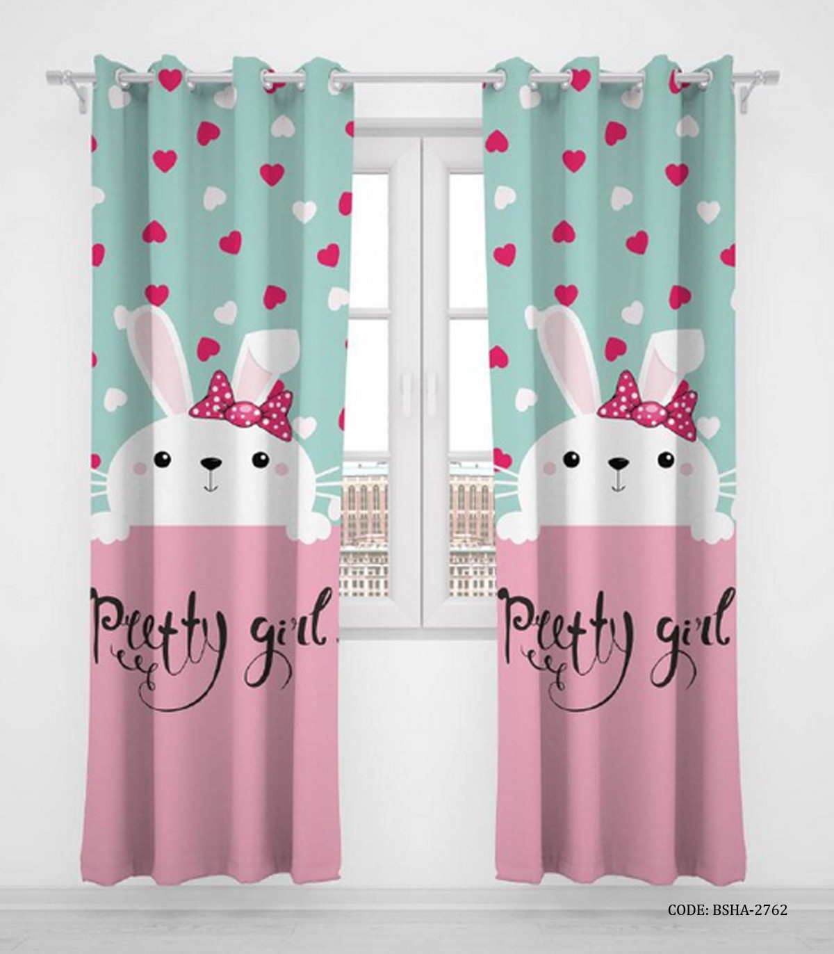 پرده پانچی دو تکه اتاق کودک دخترانه مدل Pretty Girl
