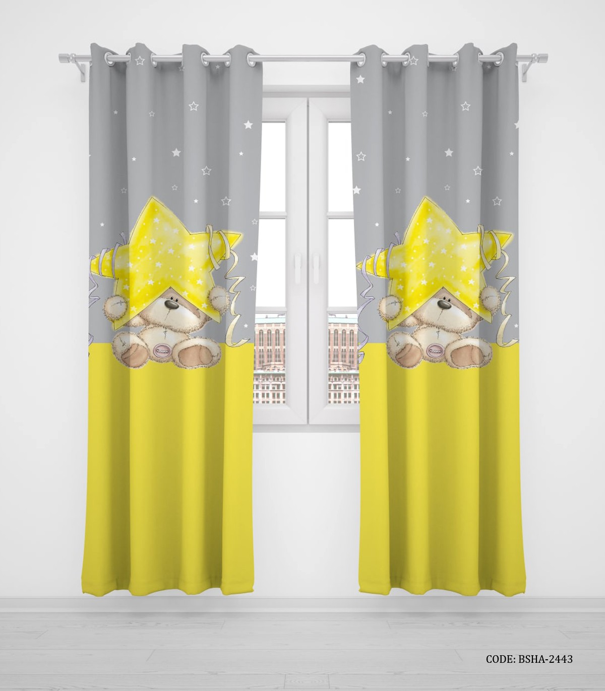 پرده پانچی دو تکه اتاق کودک پسرانه طرح خرس مدلStar Bear