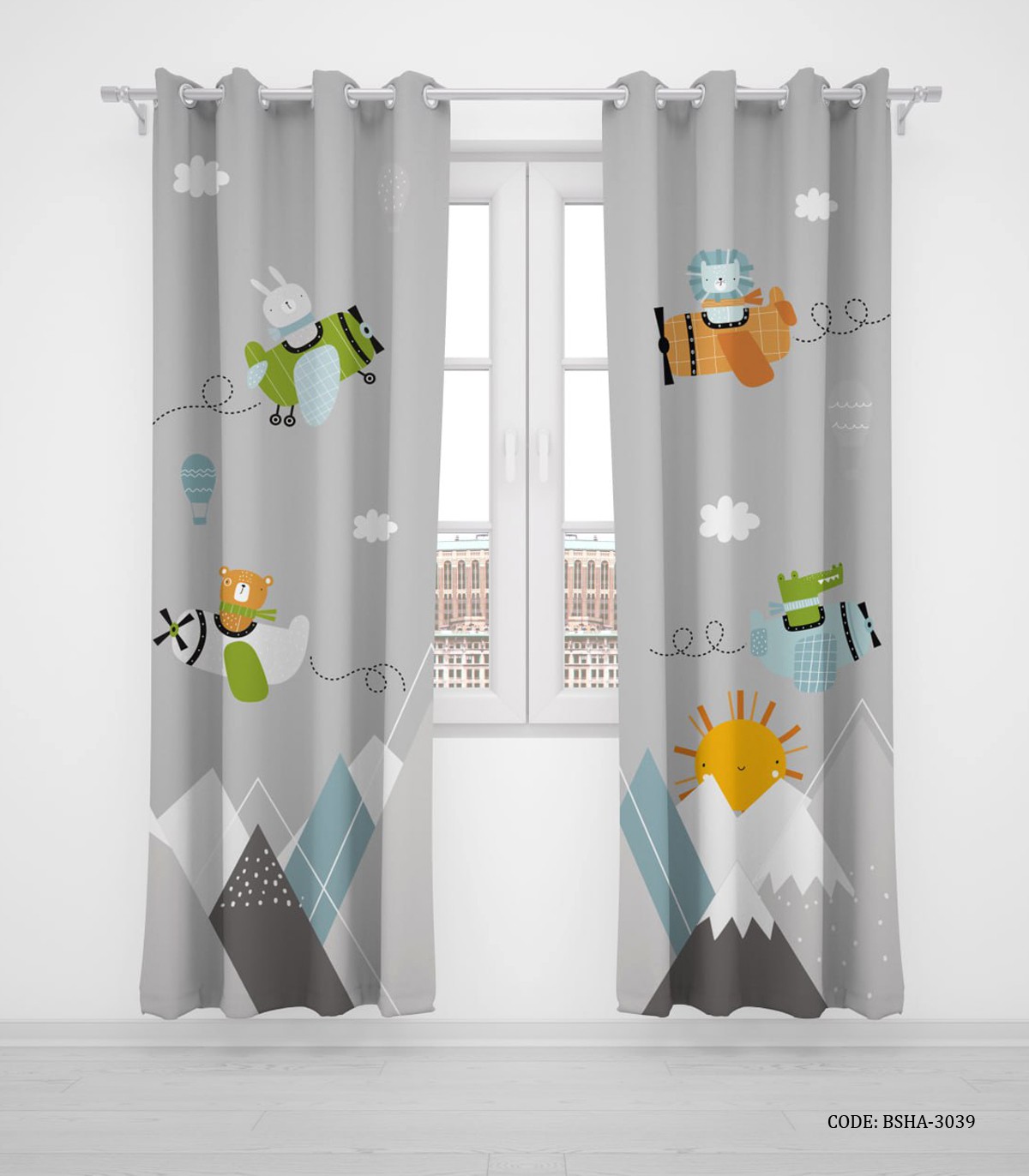 پرده پانچی دو تکه اتاق کودک پسرانه طرح شیر و خرس مدل Airplane