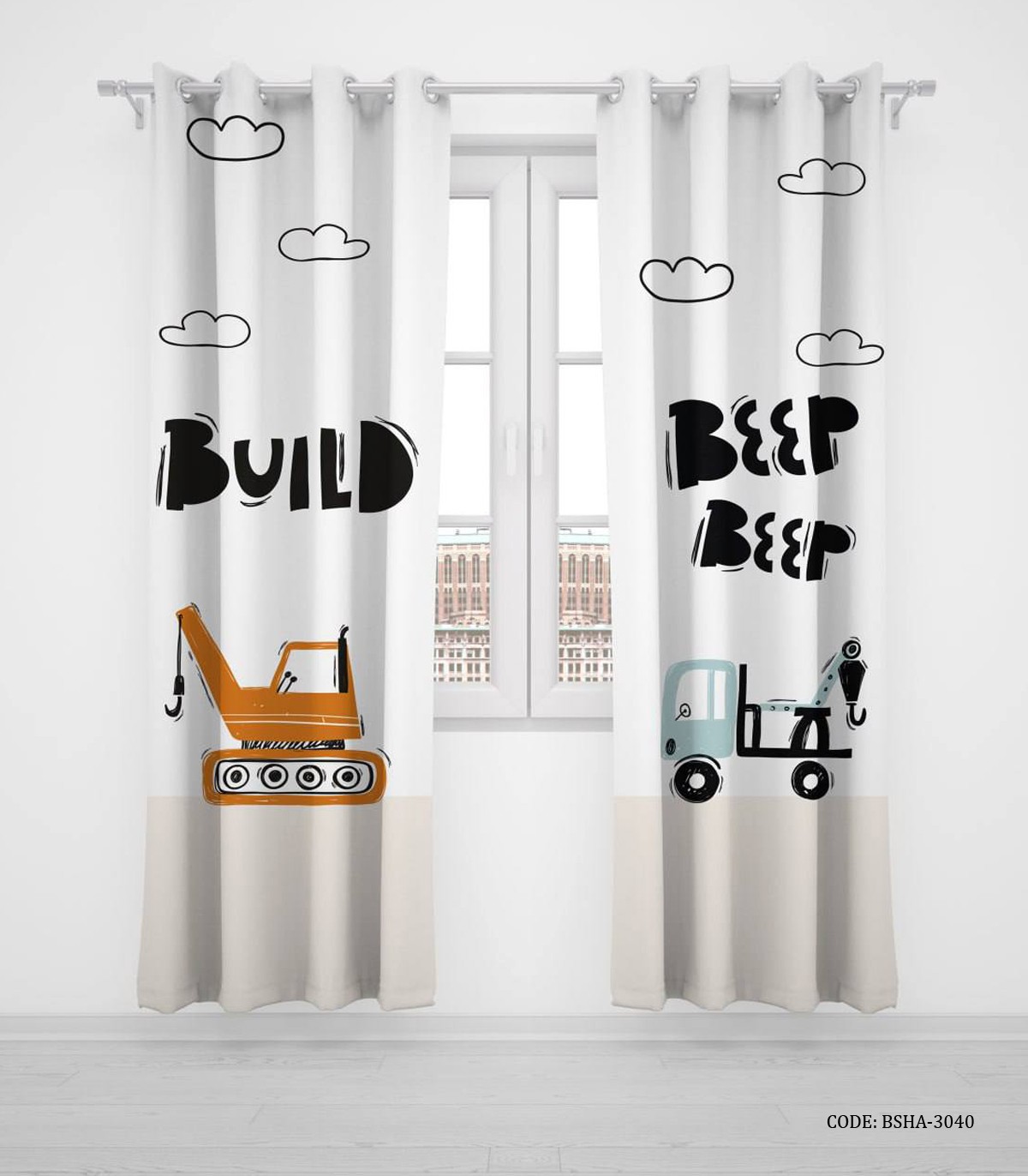 پرده پانچی دو تکه اتاق کودک پسرانه طرح جرثقیل مدل Build