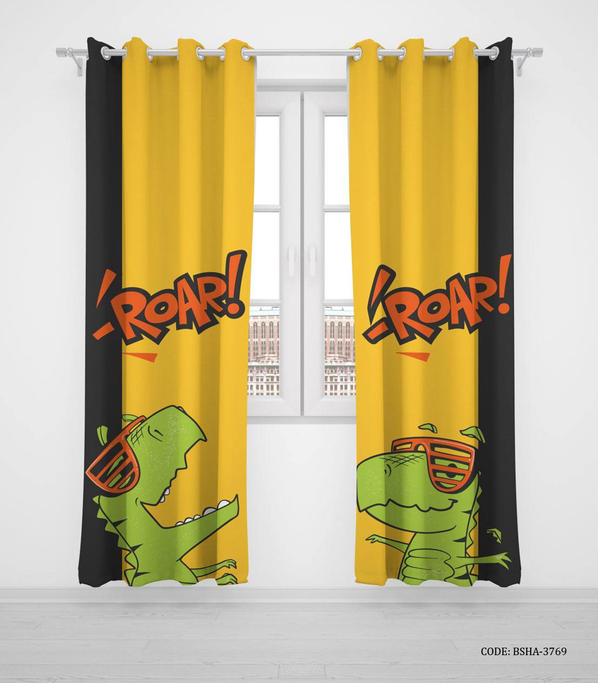 پرده پانچی دو تکه اتاق کودک پسرانه طرح دایناسور مدل ROAR