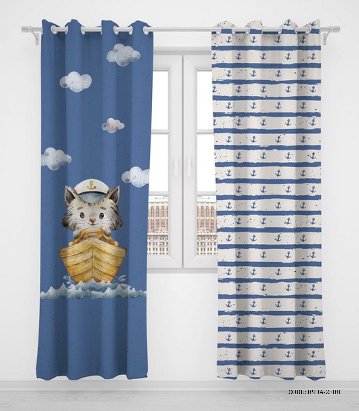 پرده پانچی دو تکه اتاق کودک پسرانه طرح گربه ملوان مدل Sailor Cat
