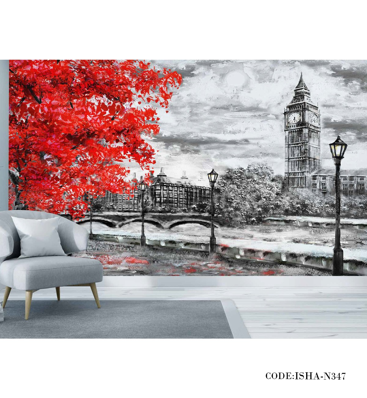 پوستر دیواری پارچه ای اتاق خواب مدل برج ساعت