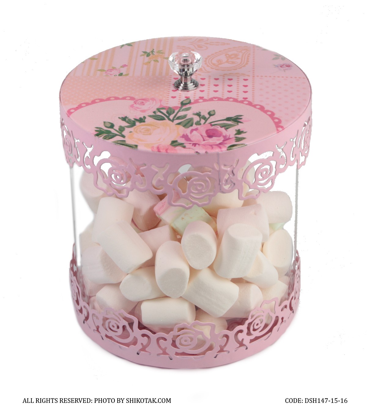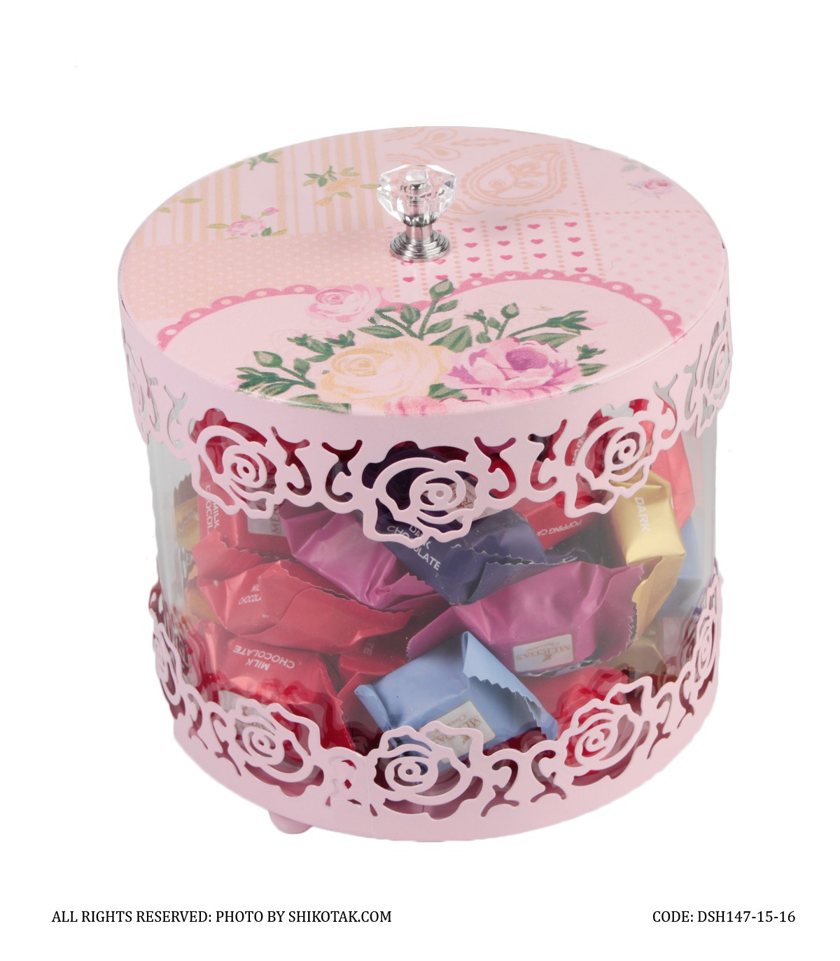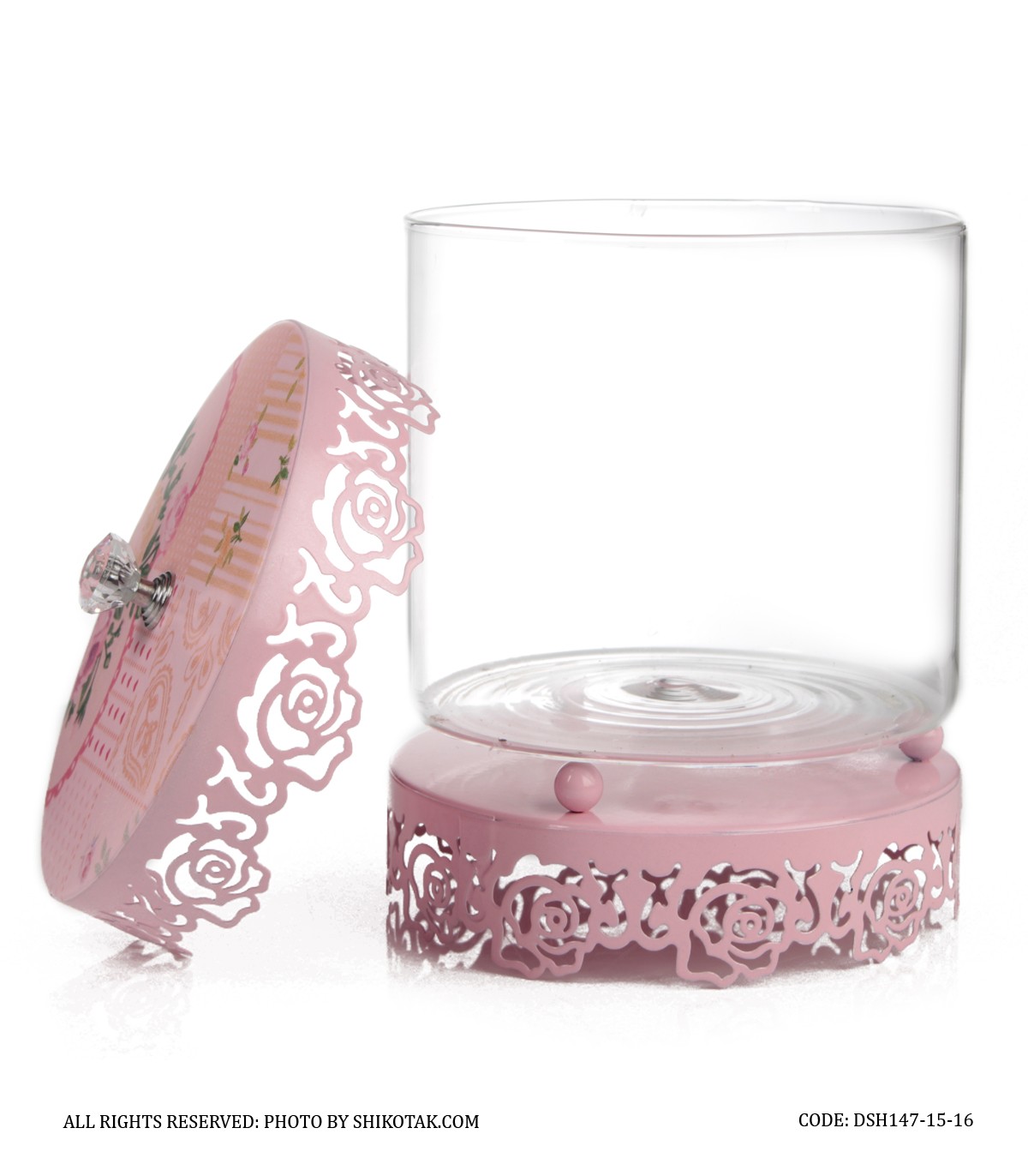 کندی باکس صورتی درب گلدار الماسی مدل Rosaline