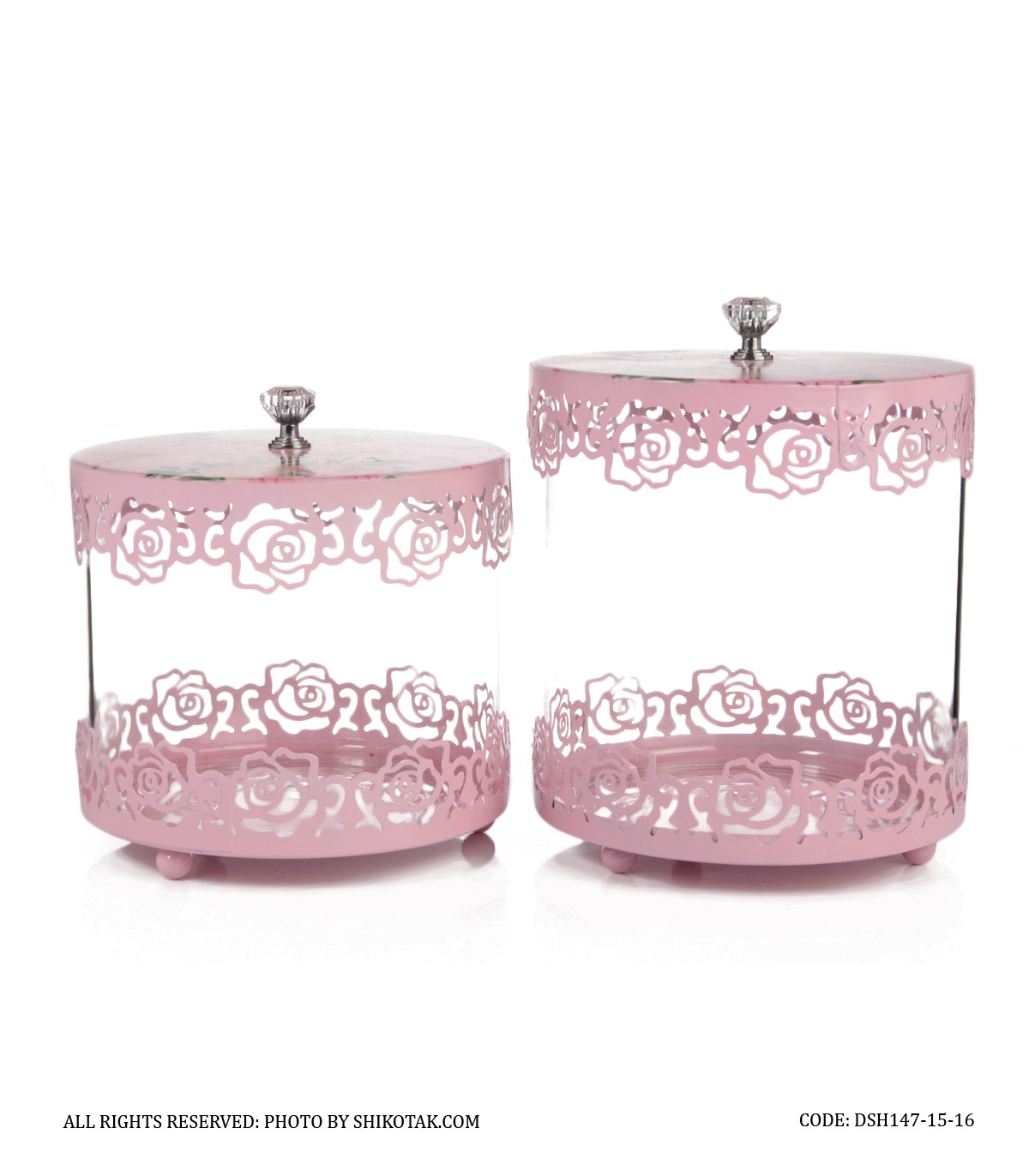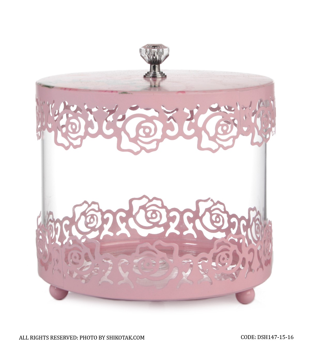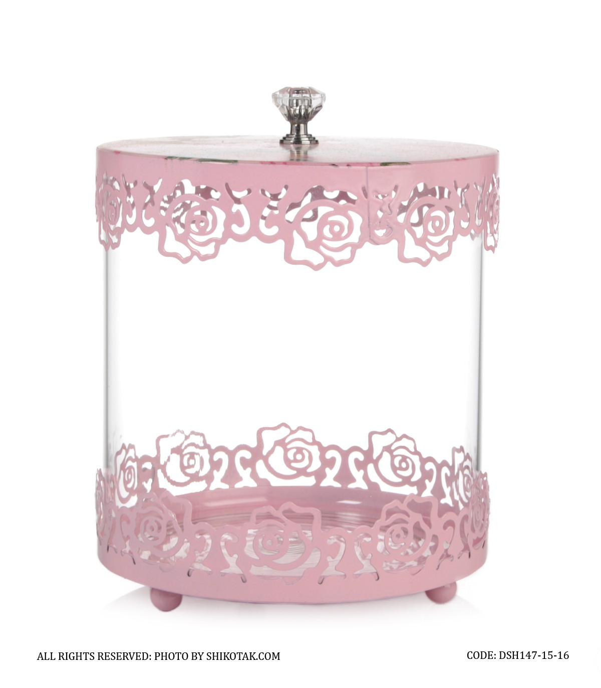کندی باکس صورتی درب گلدار الماسی مدل Rosaline