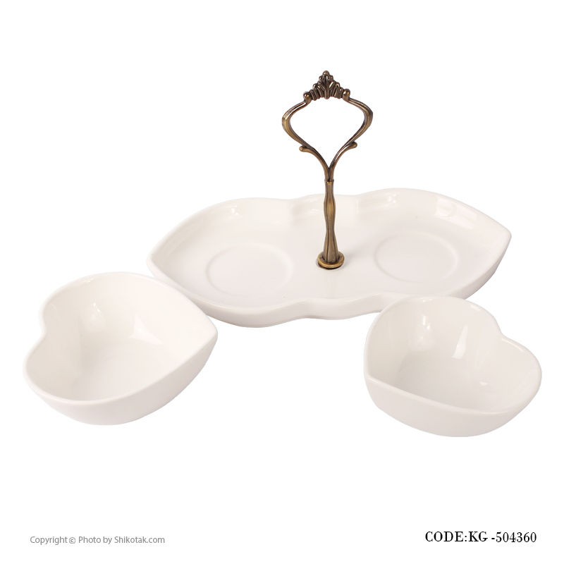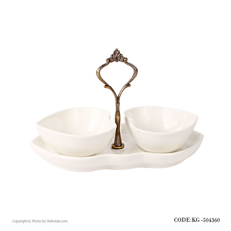 اردو خوری سفید سرامیکی قلب دوتایی با بشقاب سرامیکی