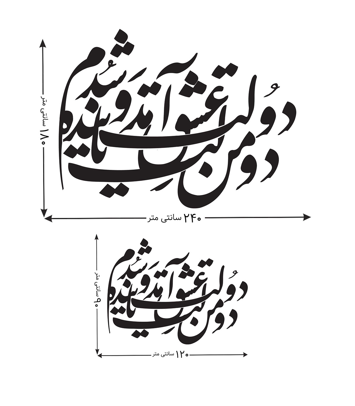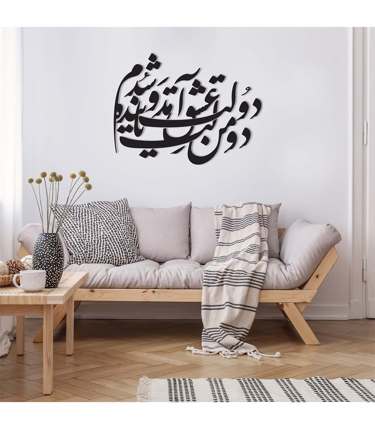 استیکر خوشنویسی چوبی طرح دولت عشق آمد و من دولت پاینده شدم