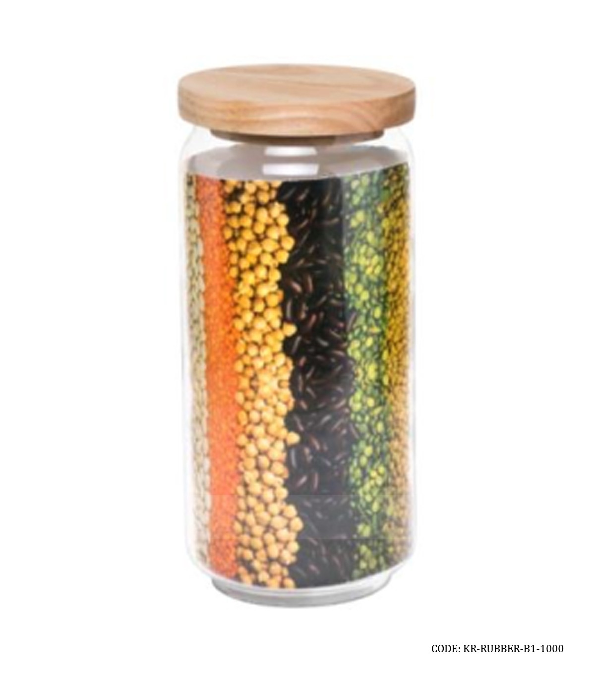 بانکه حبوبات شیشه ای درب چوبی ۱۰۰۰ میل