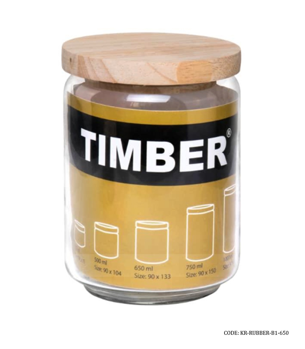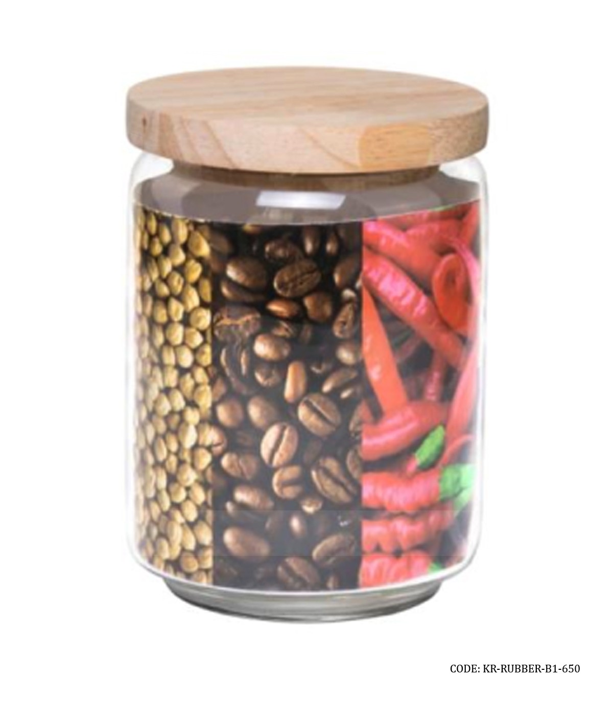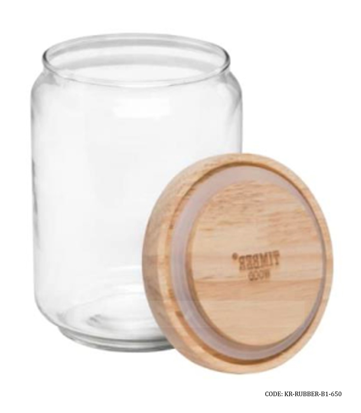 بانکه حبوبات شیشه ای درب چوبی ۶۵۰ میل