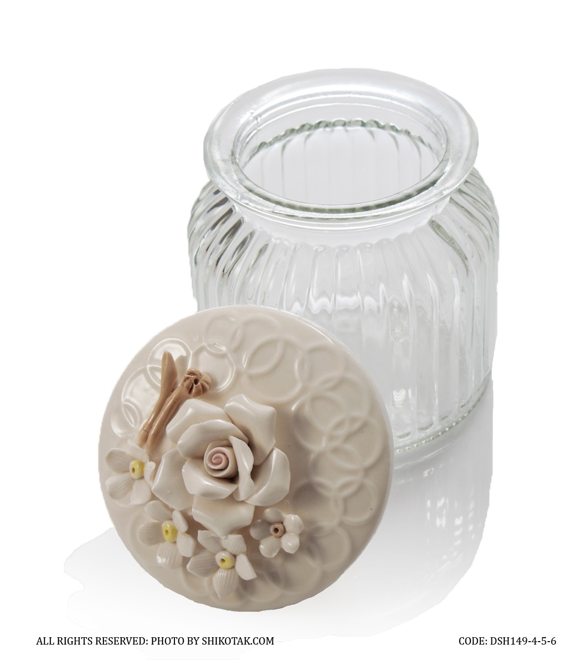 بانکه گل برجسته با درب سرامیکی گل سفید مدل بنفشه