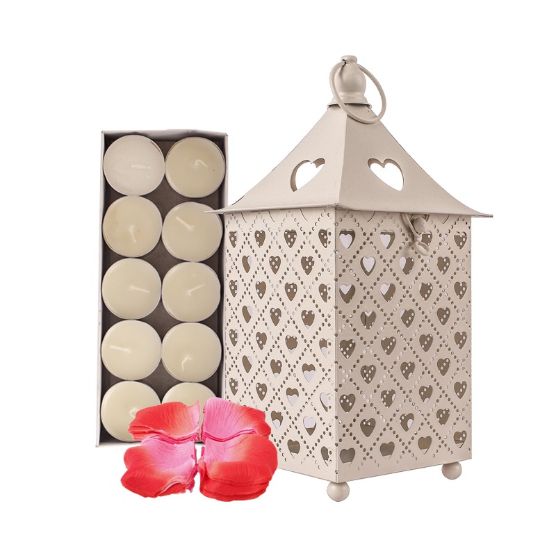 شامل | یک پک 20 تایی شمع وامر، یک عدد فانوس تزیینی قلبی، سه بسته گلبرگ قرمز، یک بسته گلبرگ سفید |