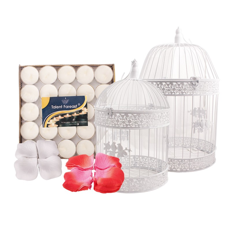 شامل | یک پک 50 تایی شمع وامر، دو عدد قفس تزیینی سایز بزرگ، یک بسته گلبرگ سفید، چهار بسته گلبرگ قرمز |