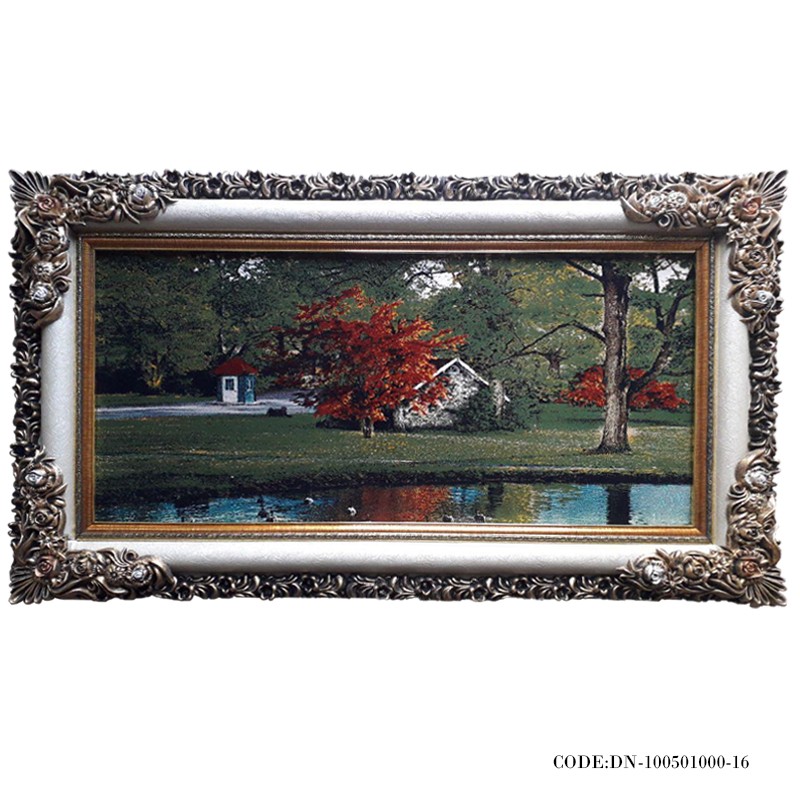 تابلوفرش ماشینی طرح کلبه کنار برکه