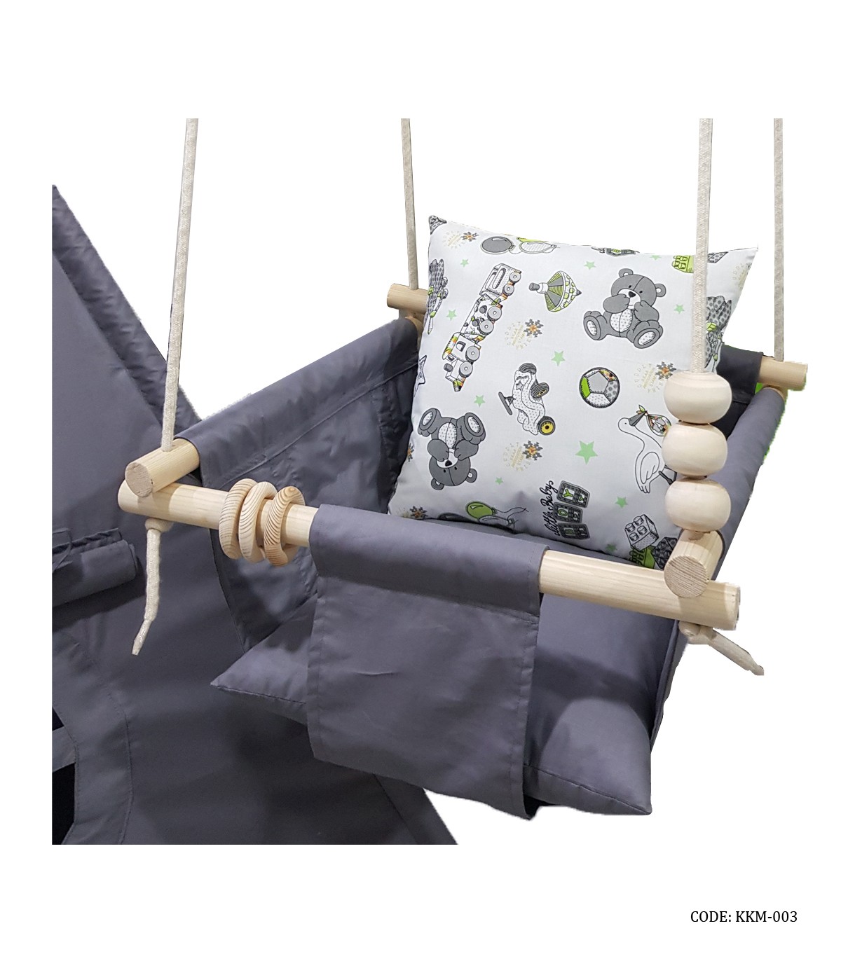 محتویات بسته بندی | تاب کودک- چادر به همراه چوب- تشکچه کف چادر- کوسن پر شده |