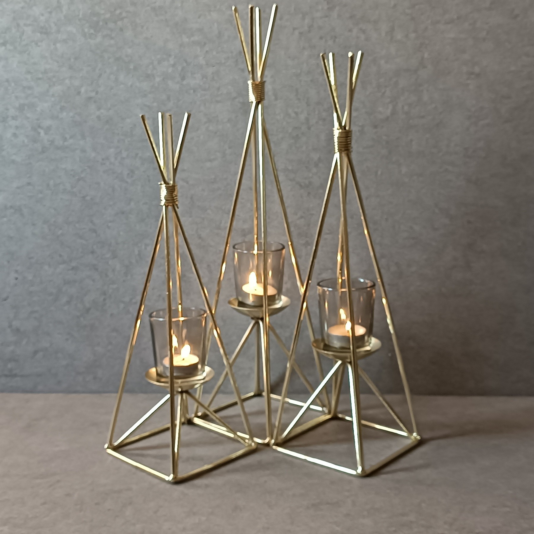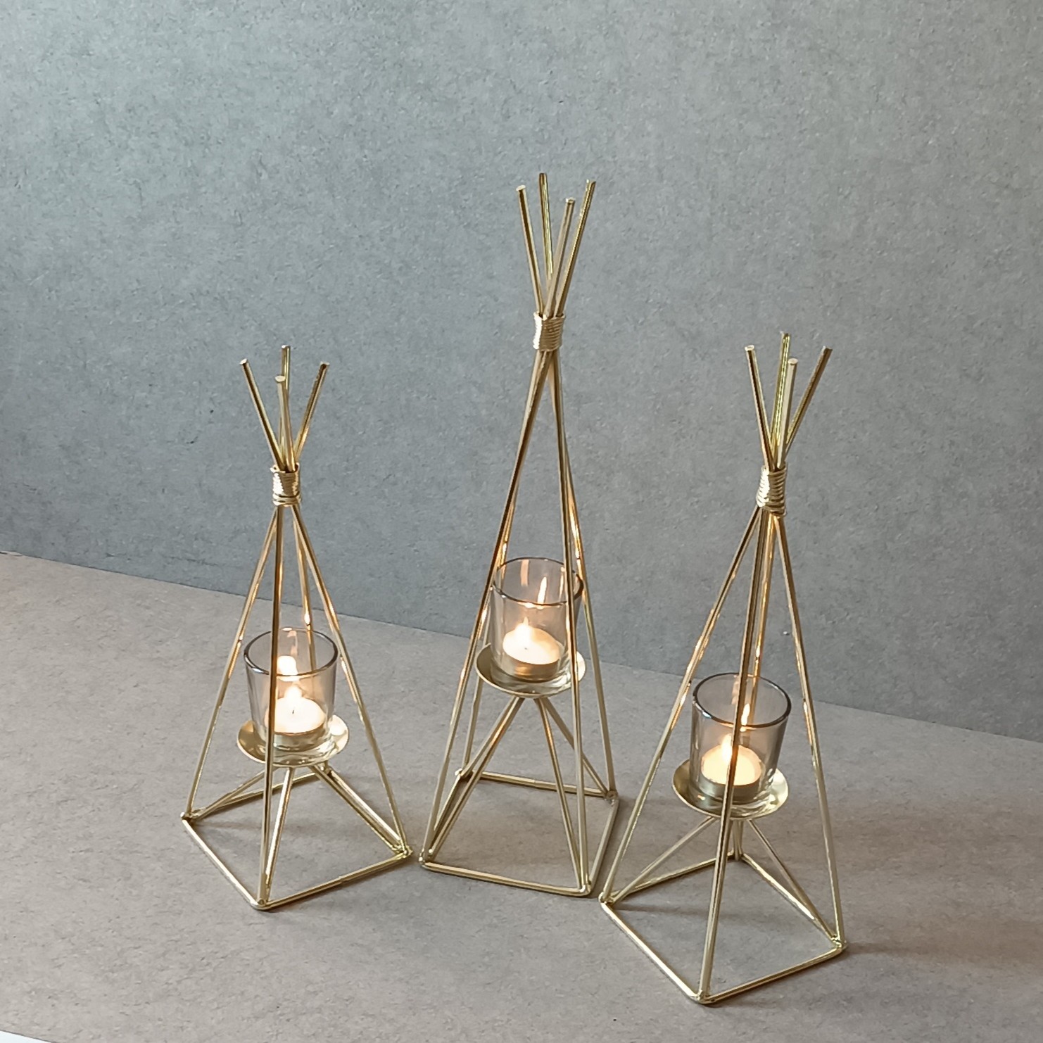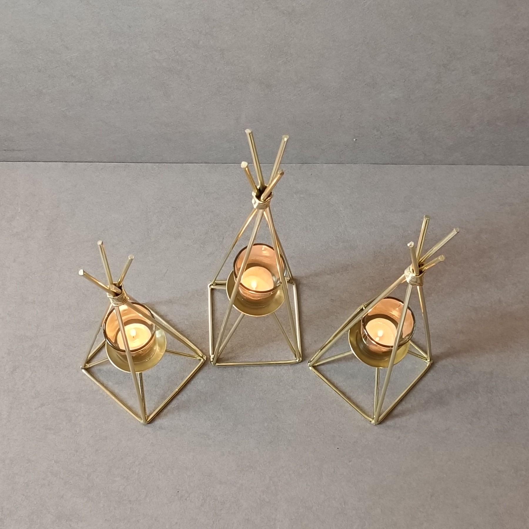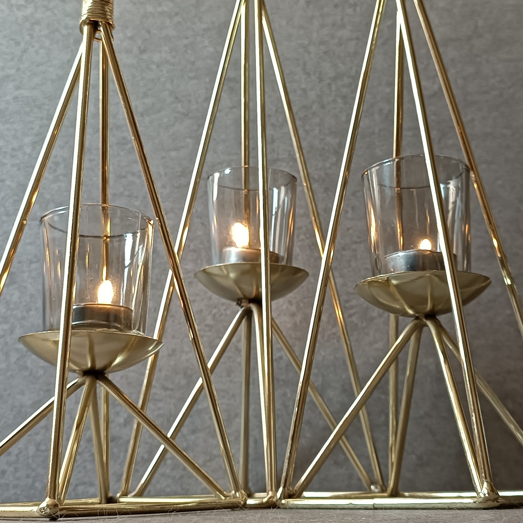 جاشمعی فلزی طلایی سه شعله گژک مدل سرخپوستی