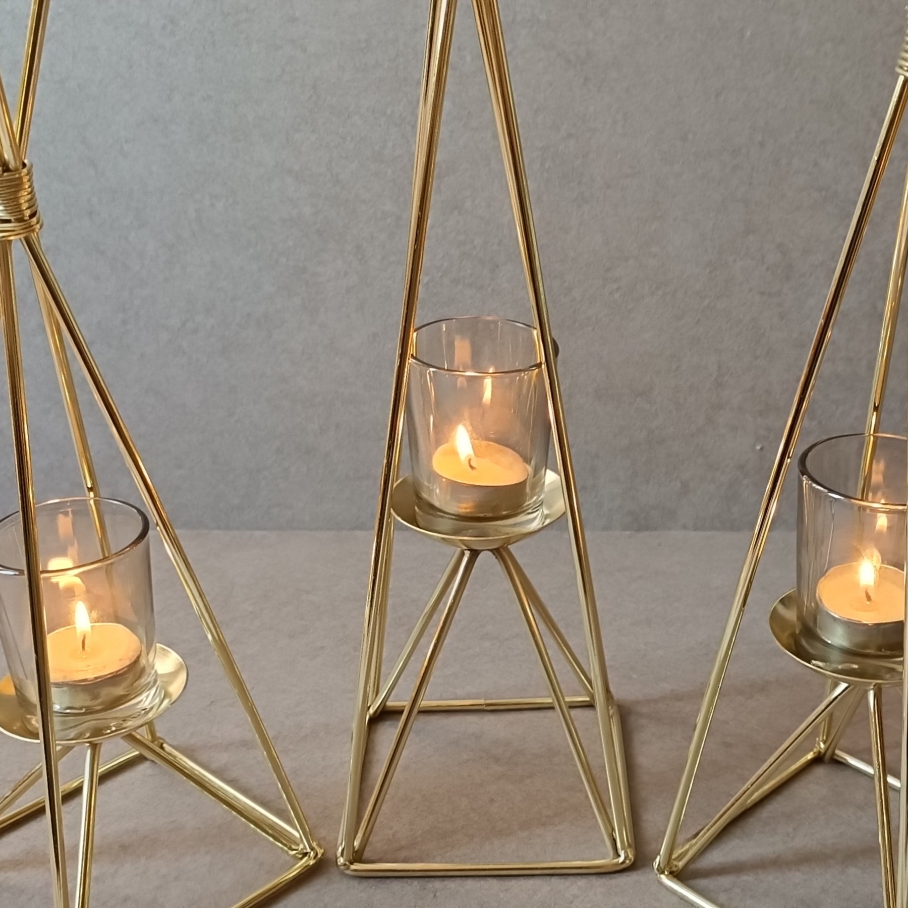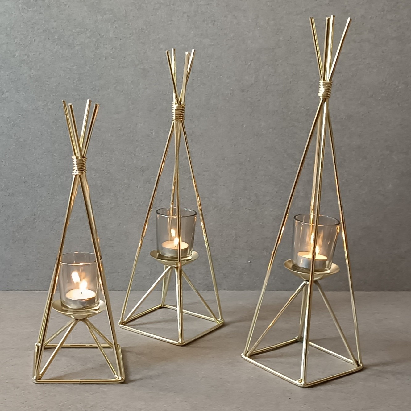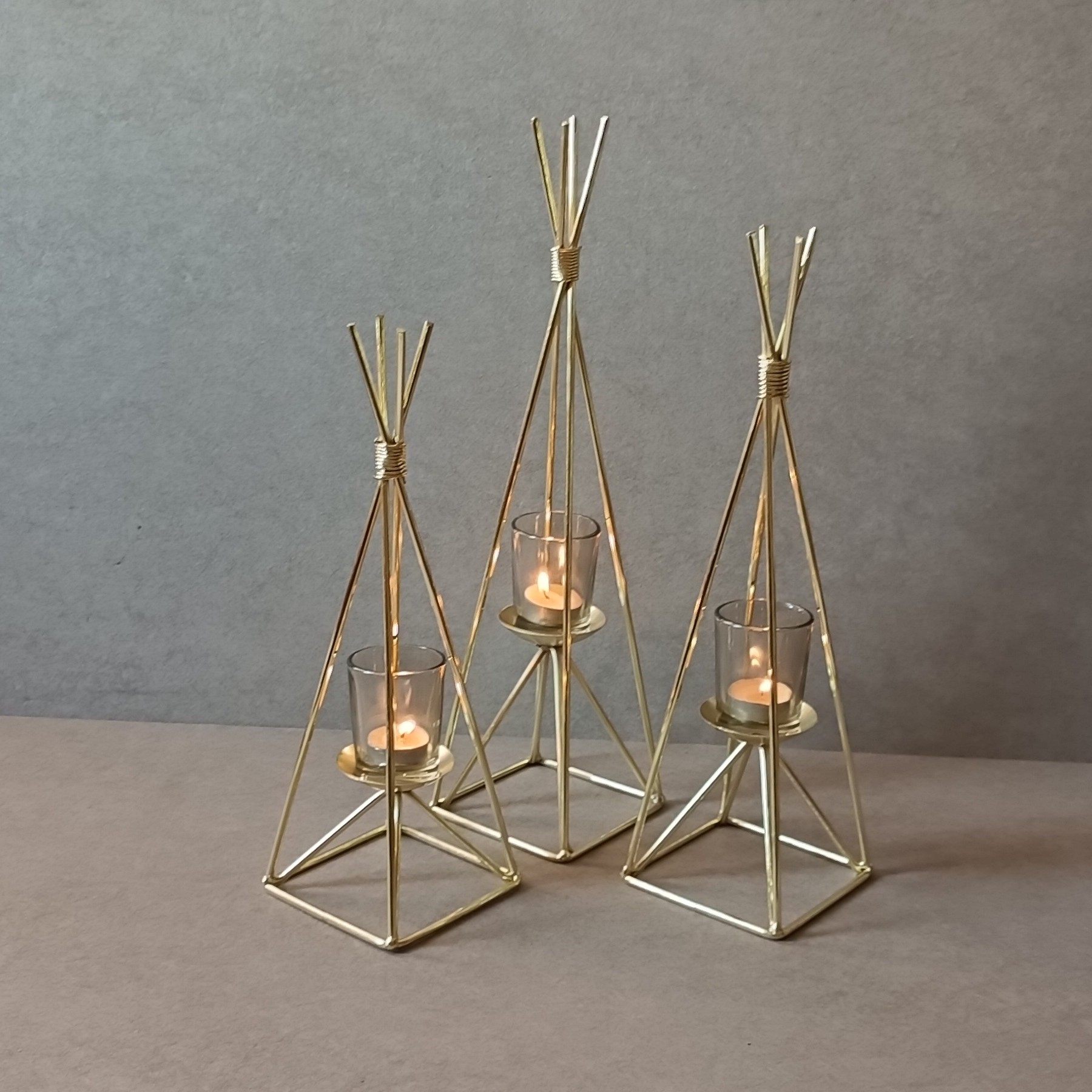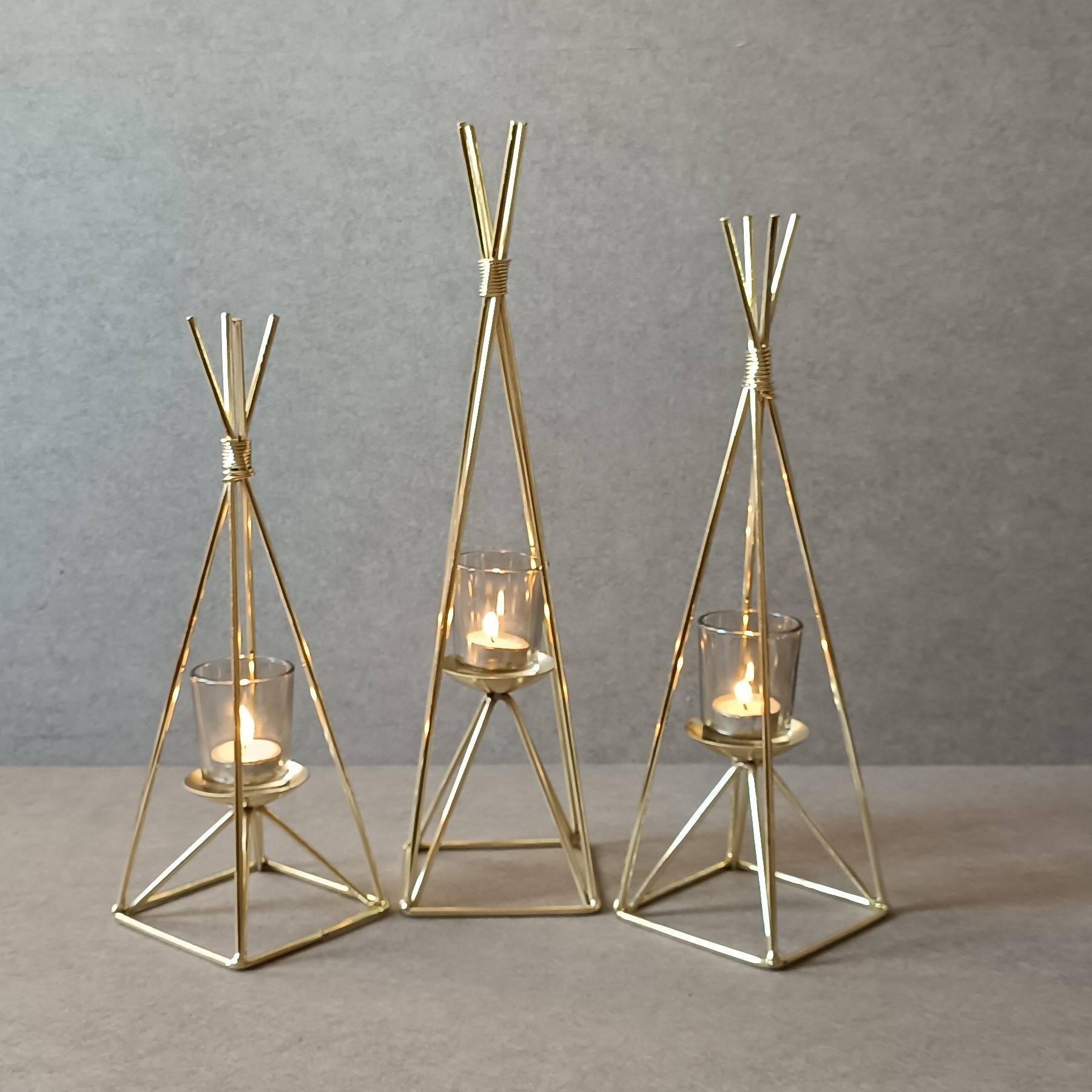جاشمعی فلزی طلایی سه شعله گژک مدل سرخپوستی