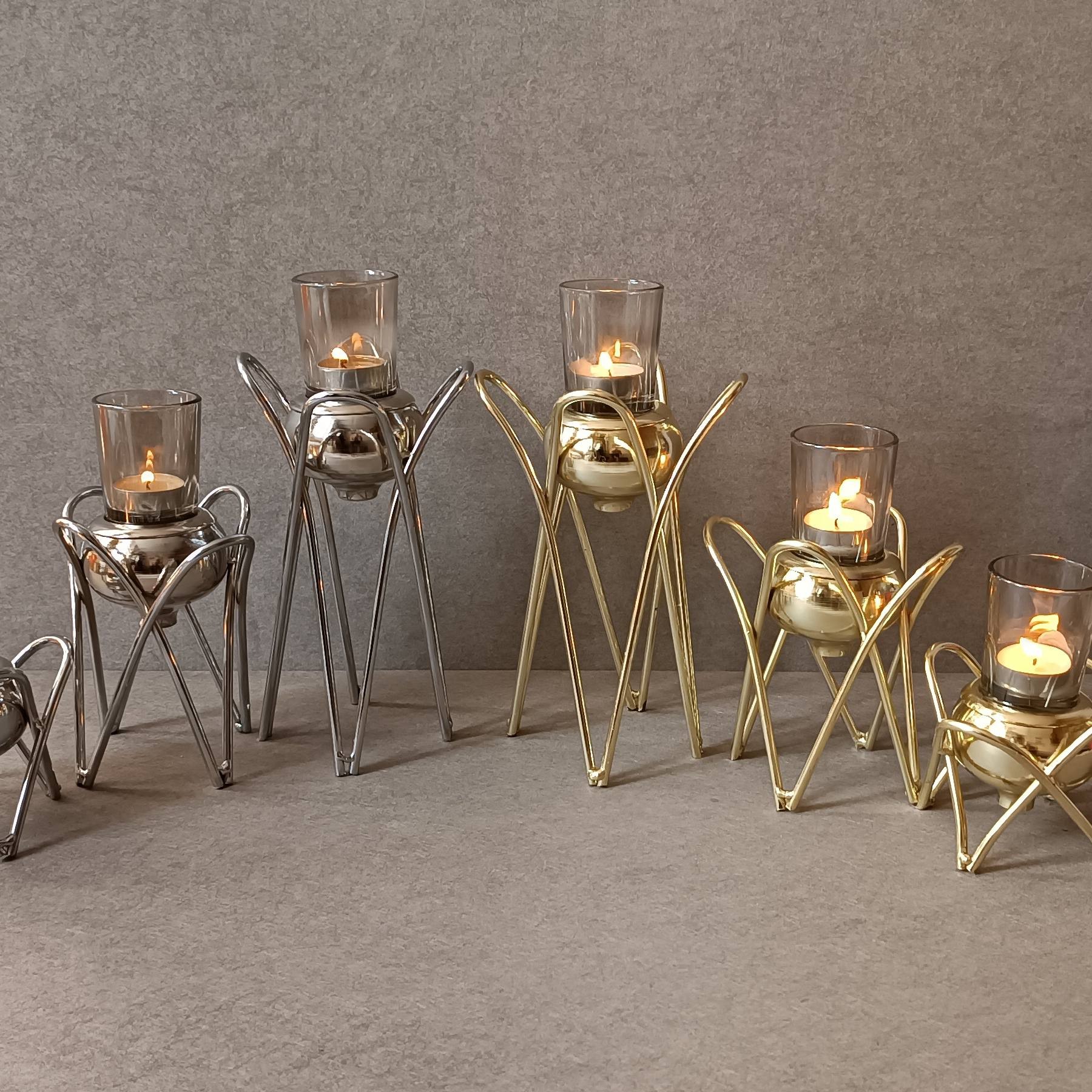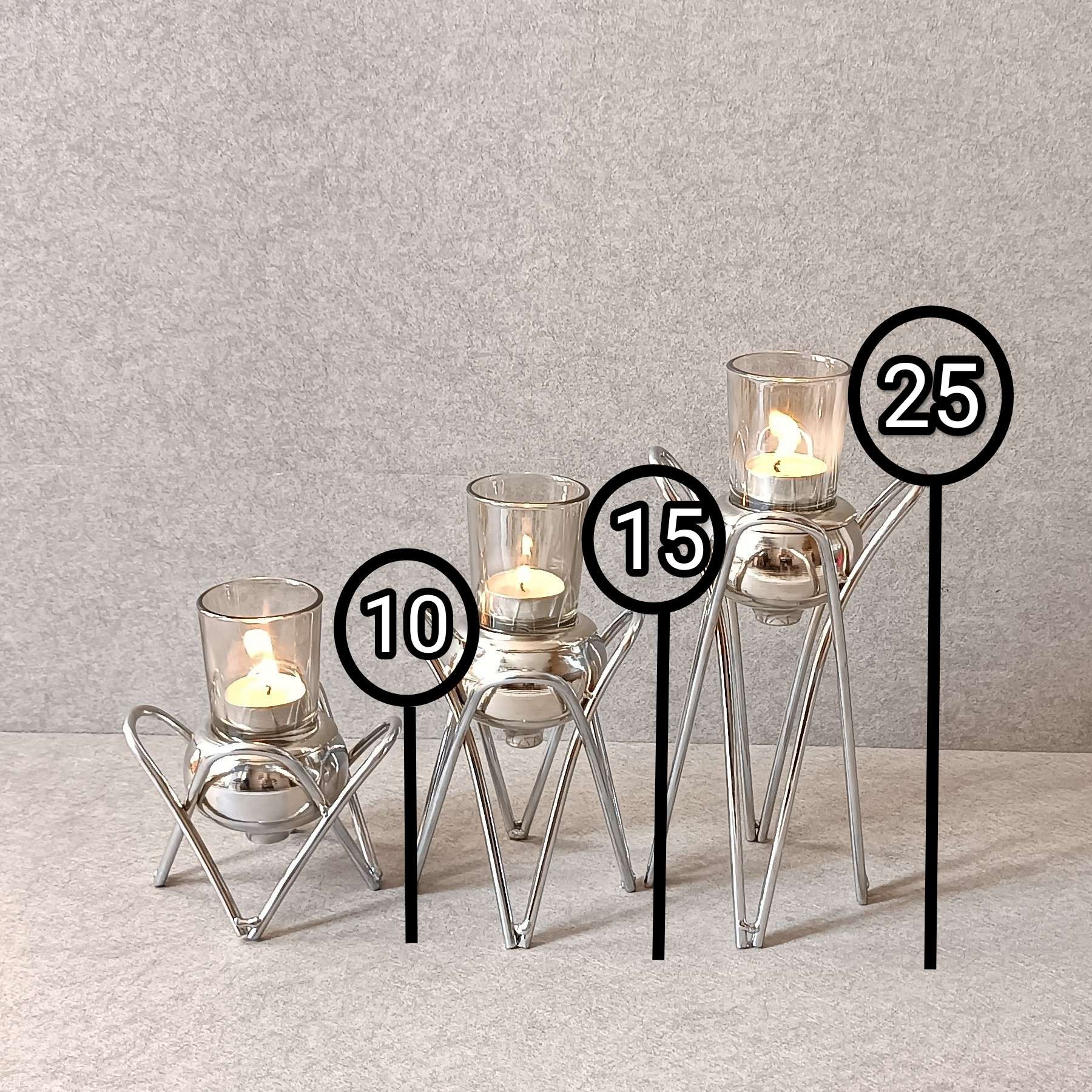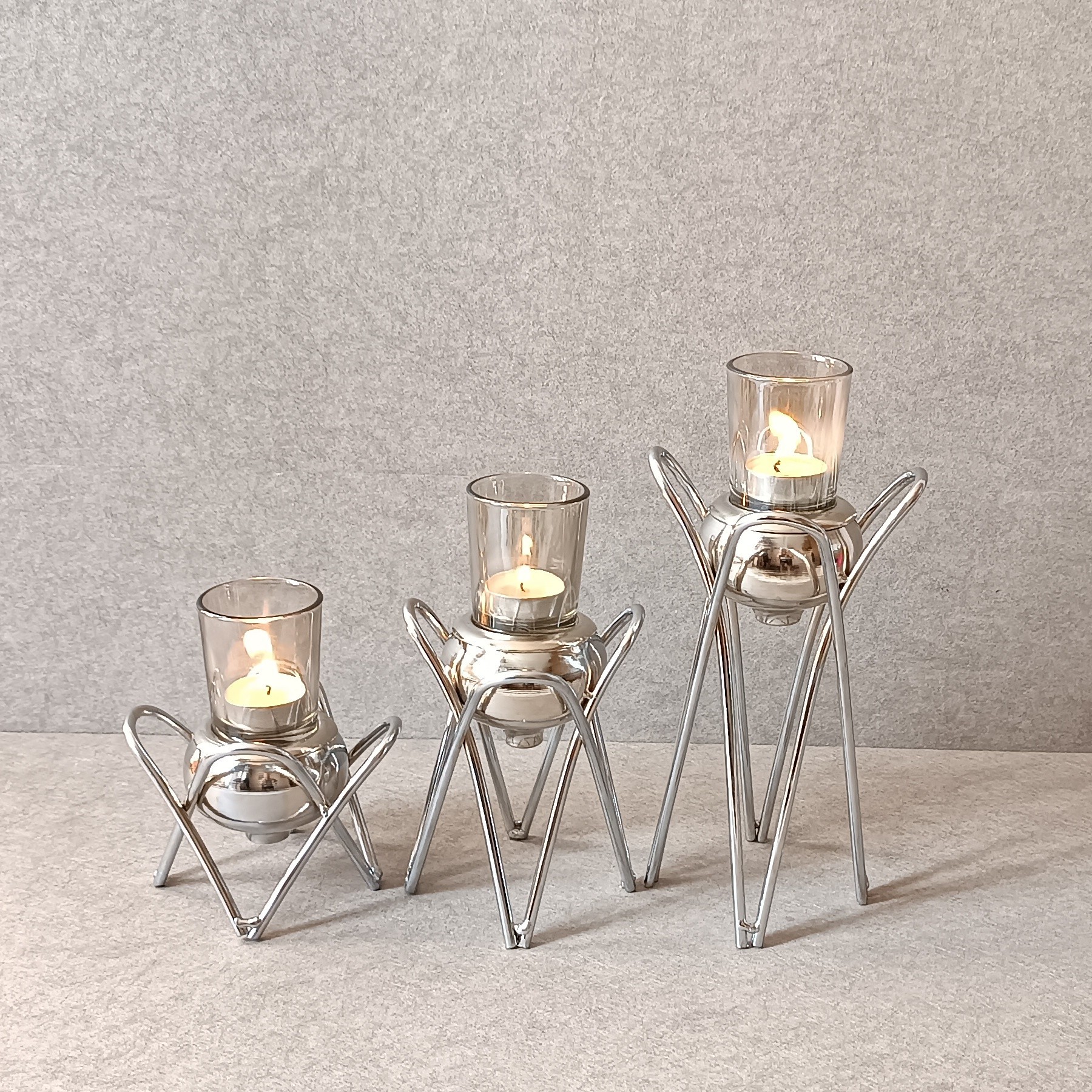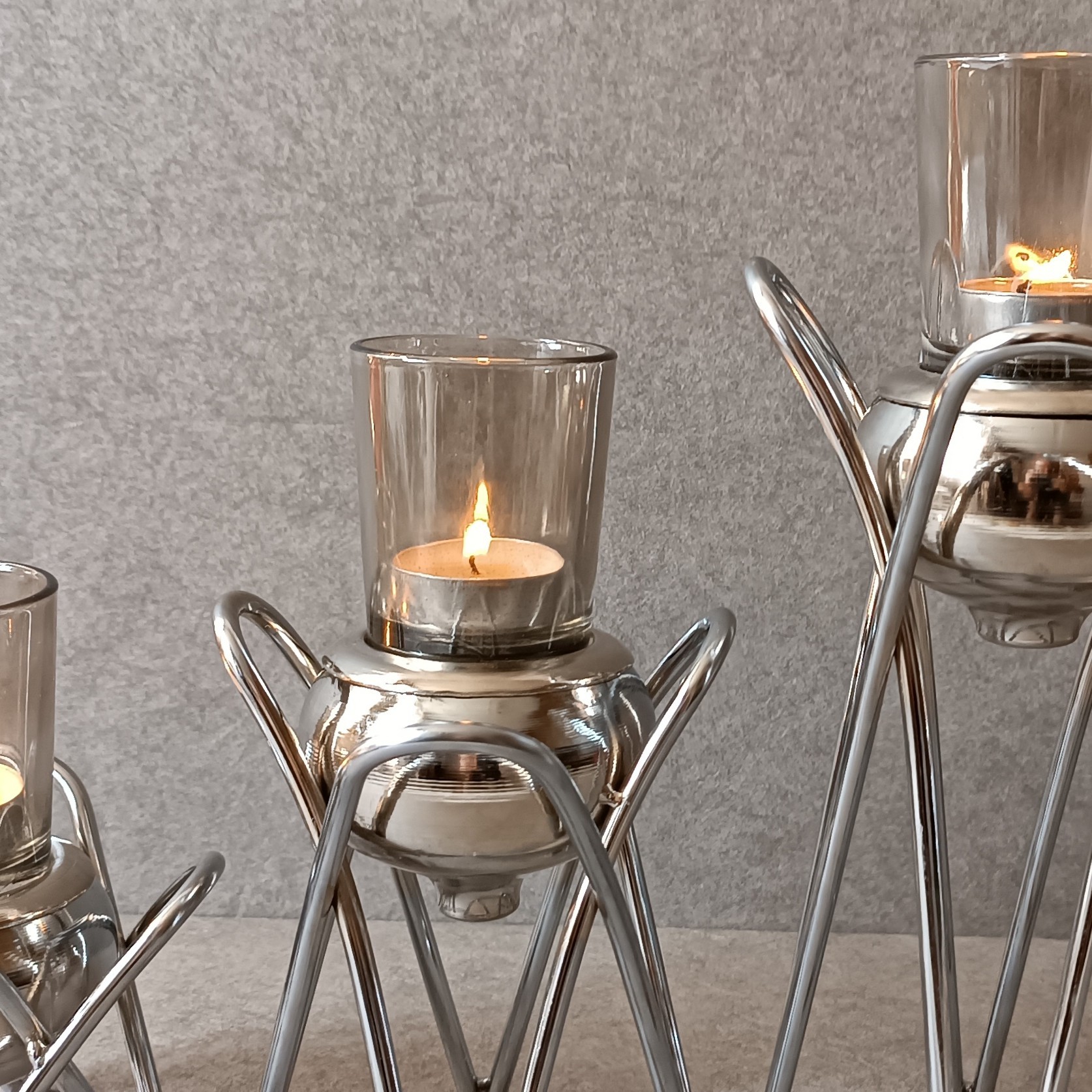 جاشمعی فلزی نقره ای سه شعله گژک طرح لاله