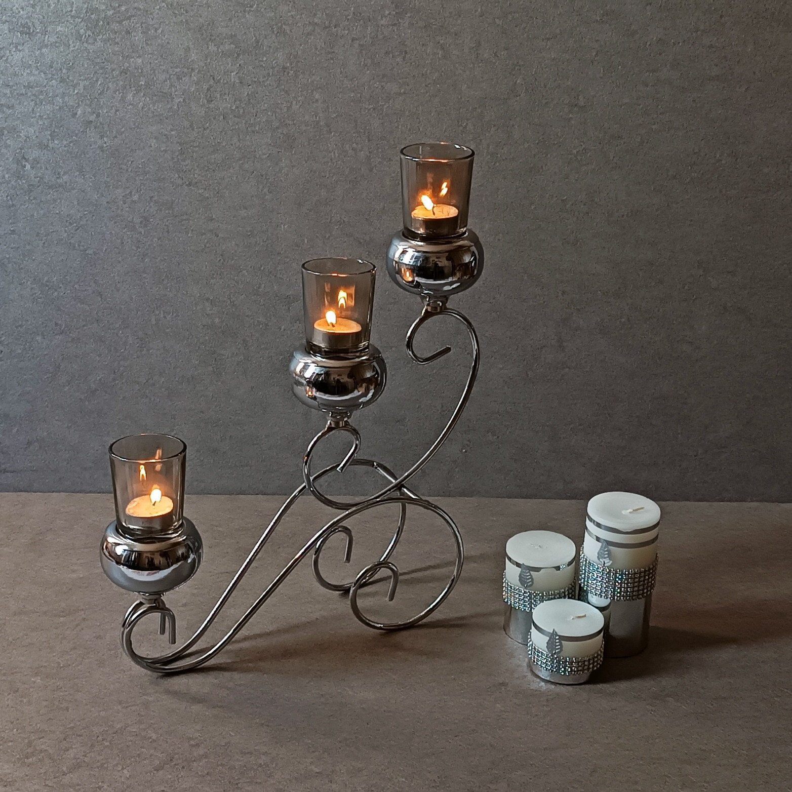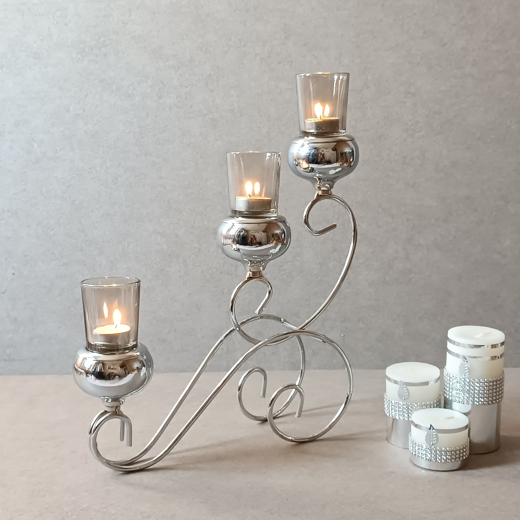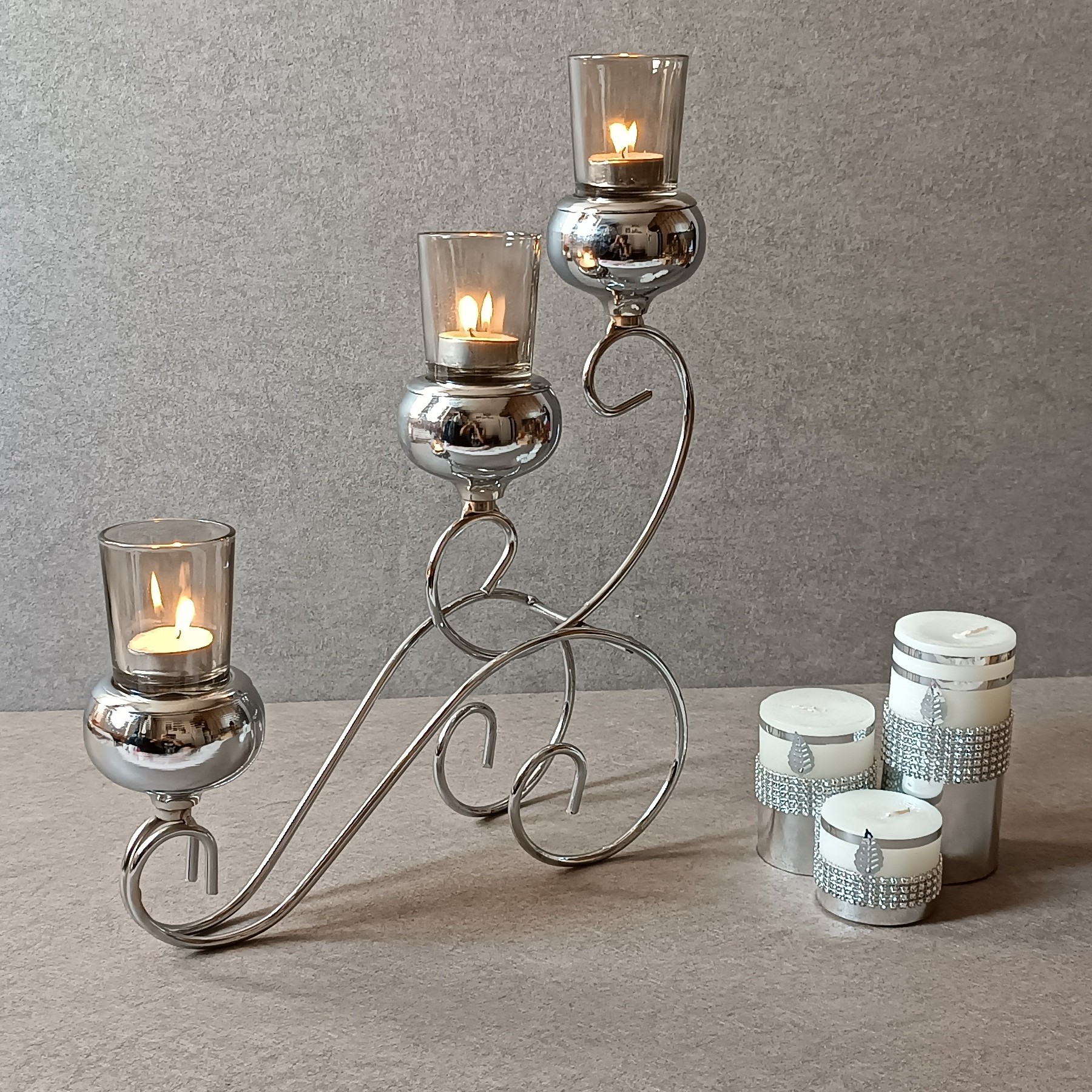 جاشمعی فلزی نقره ای سه شعله گژک مدل کالسکه