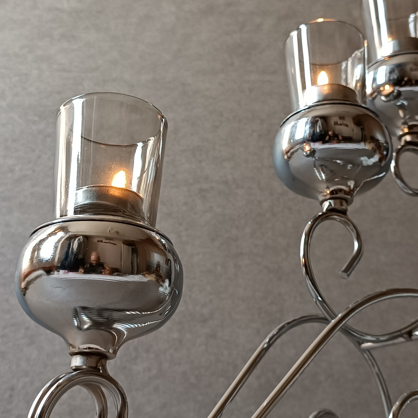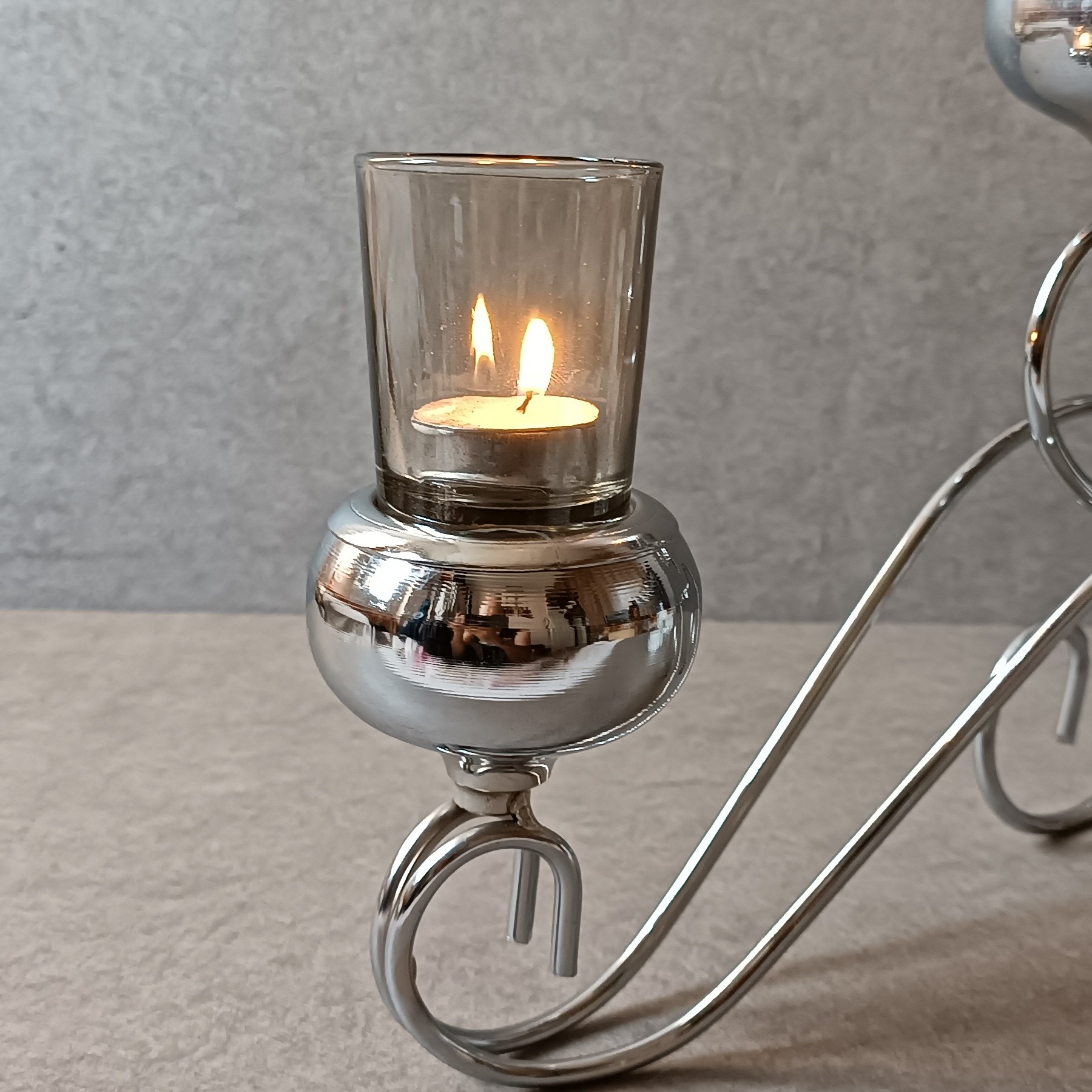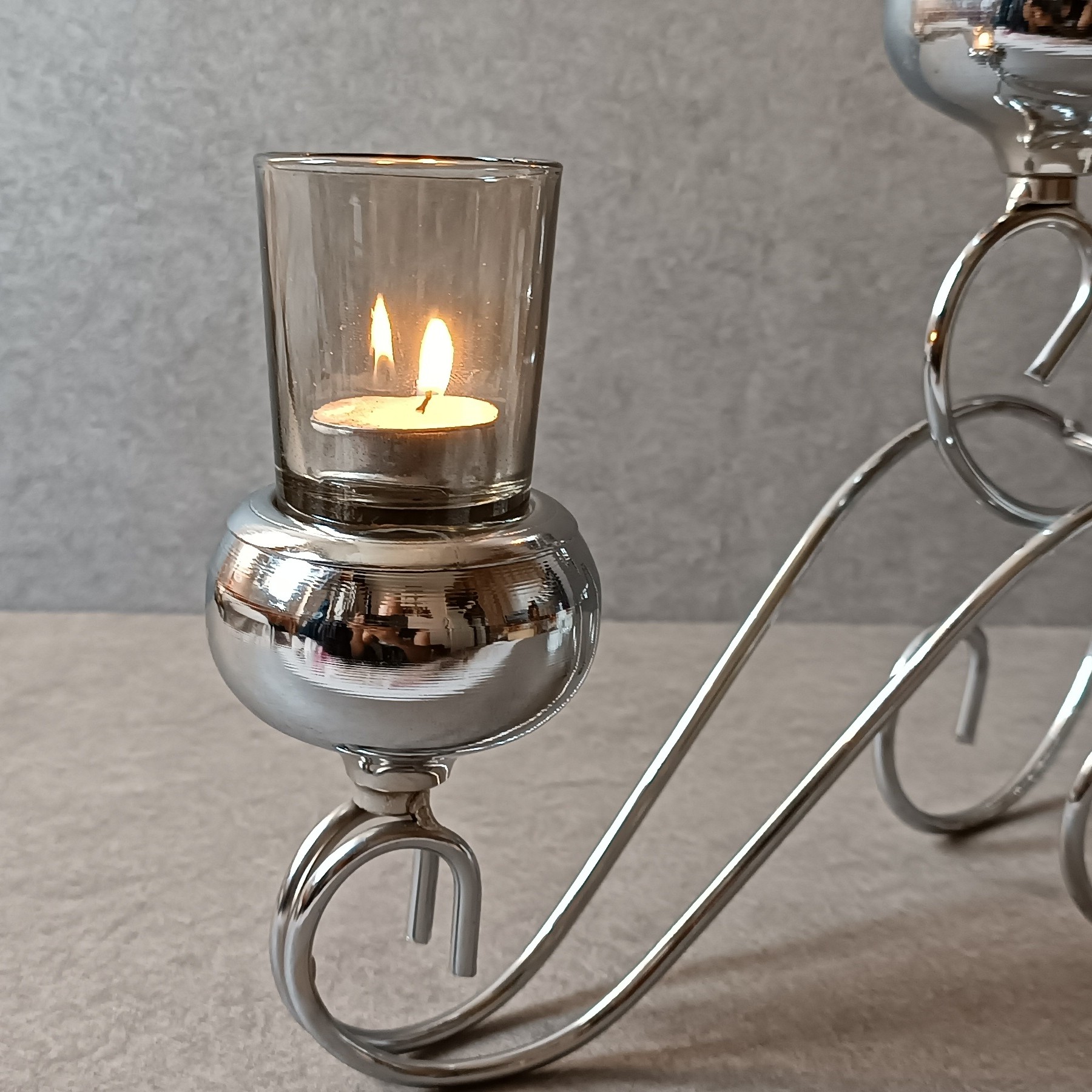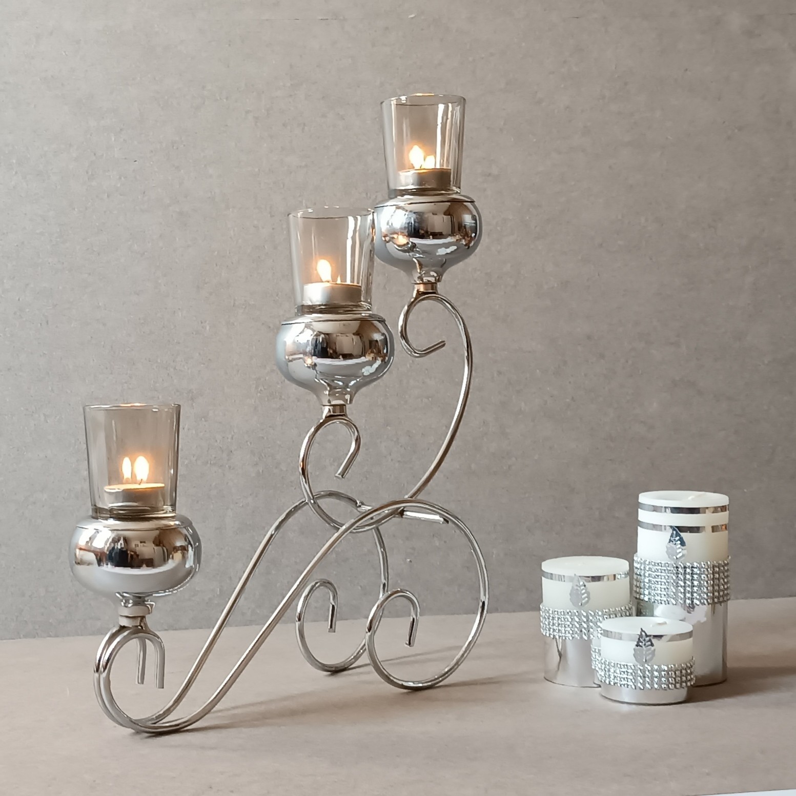 جاشمعی فلزی نقره ای سه شعله گژک مدل کالسکه