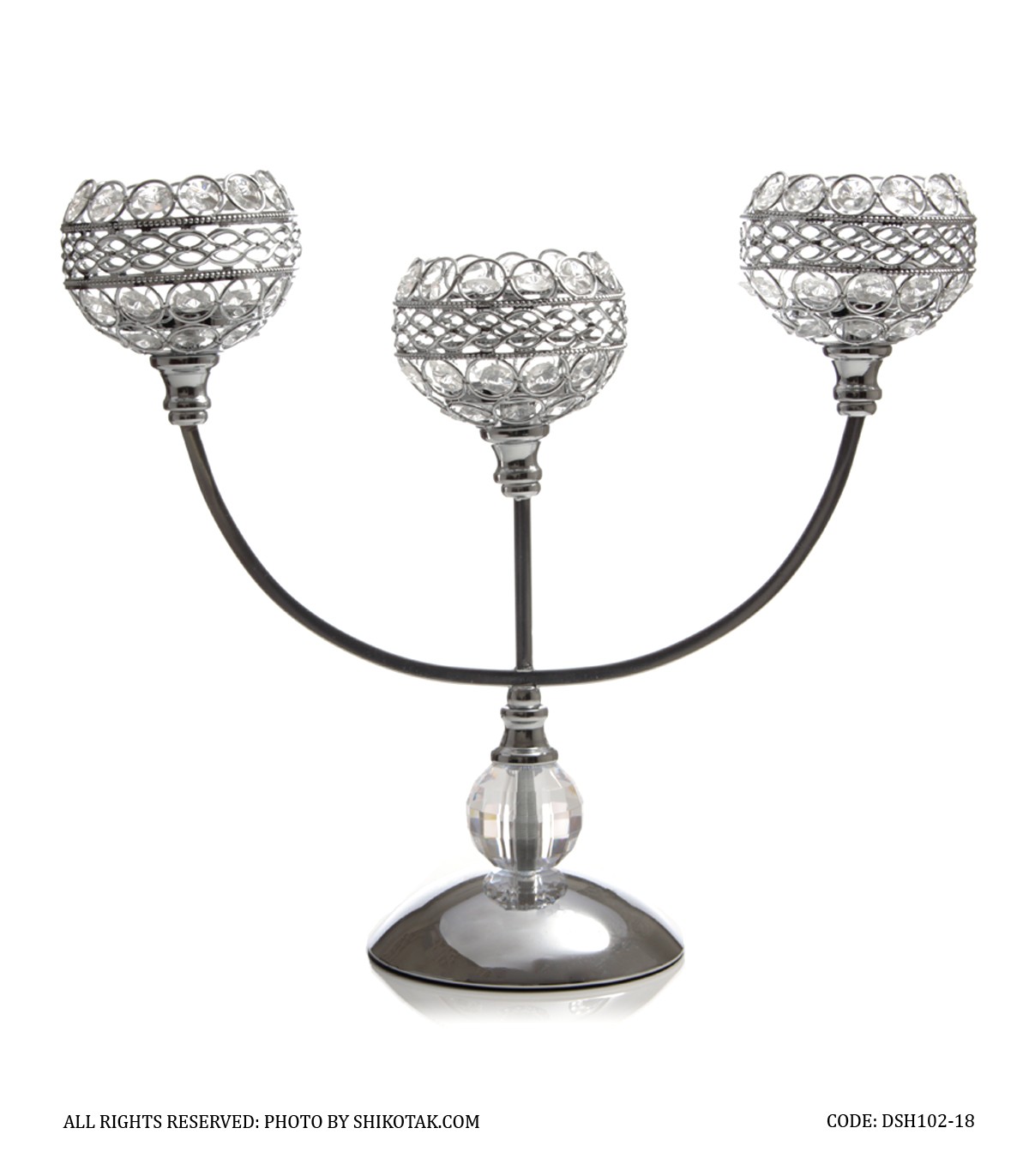 جاشمعی پایه دار نقره ای ۳ شعله مدل w
