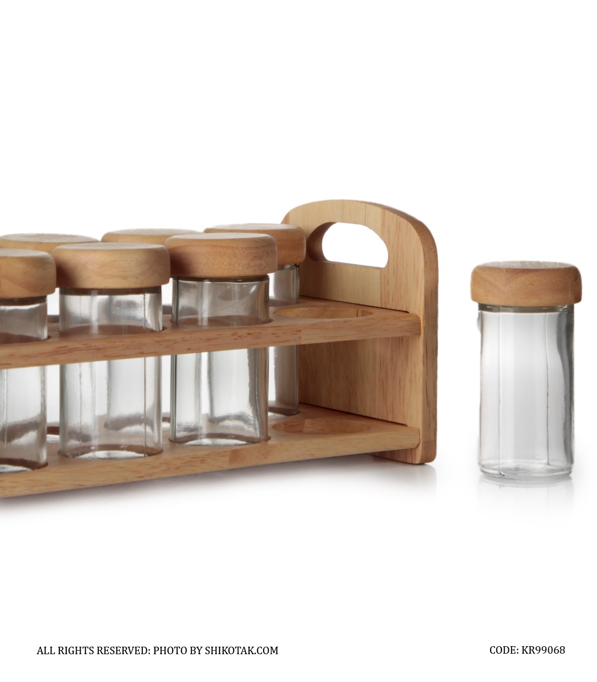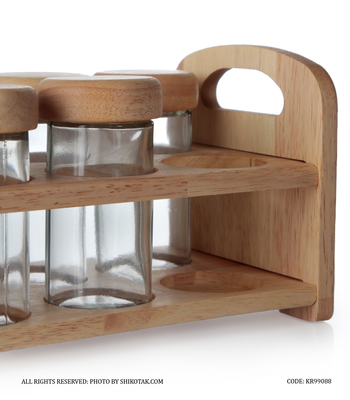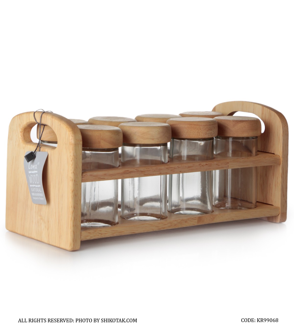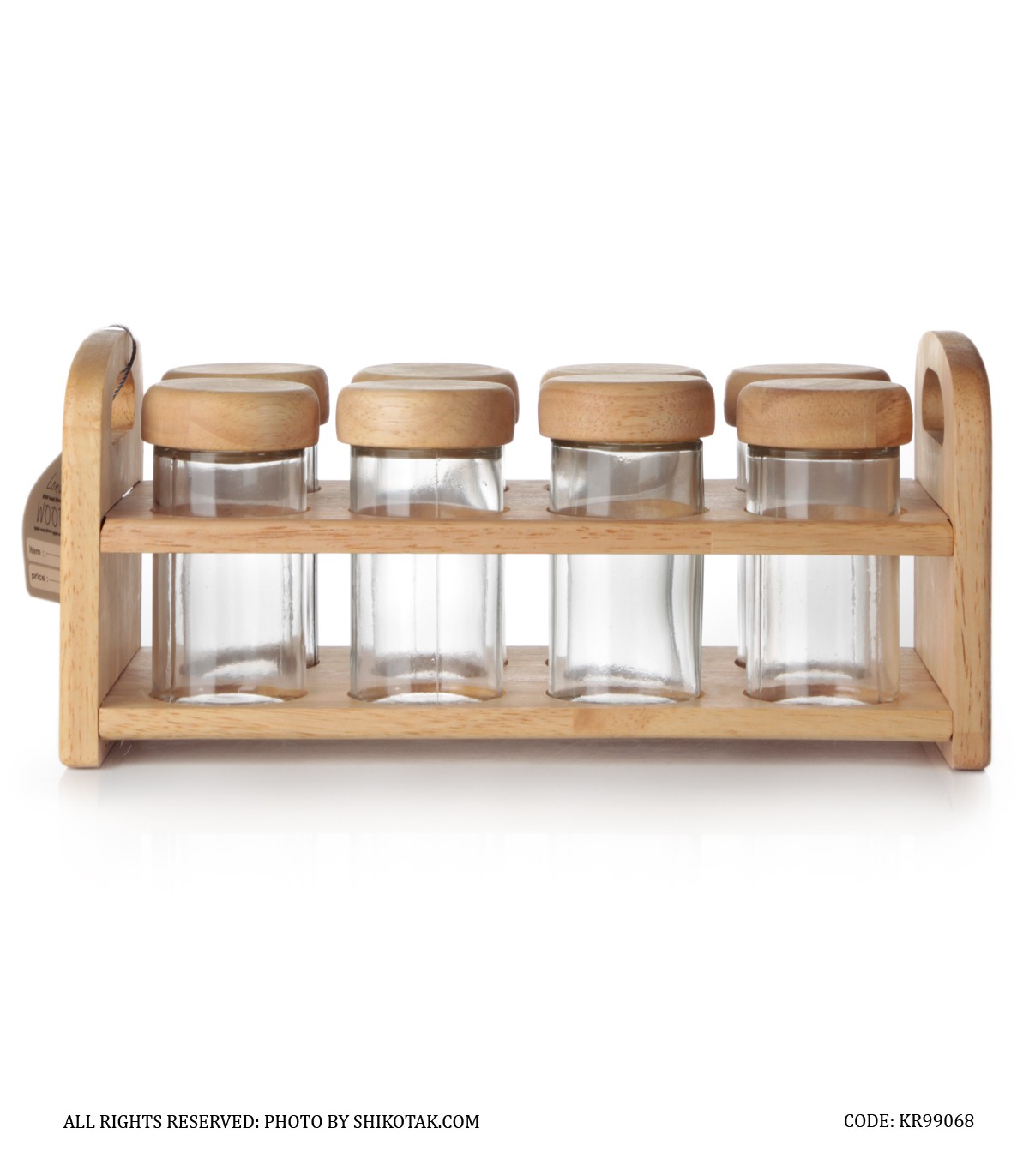 جا ادویه چوبی ۸ تایی با استند چوبی الیکا