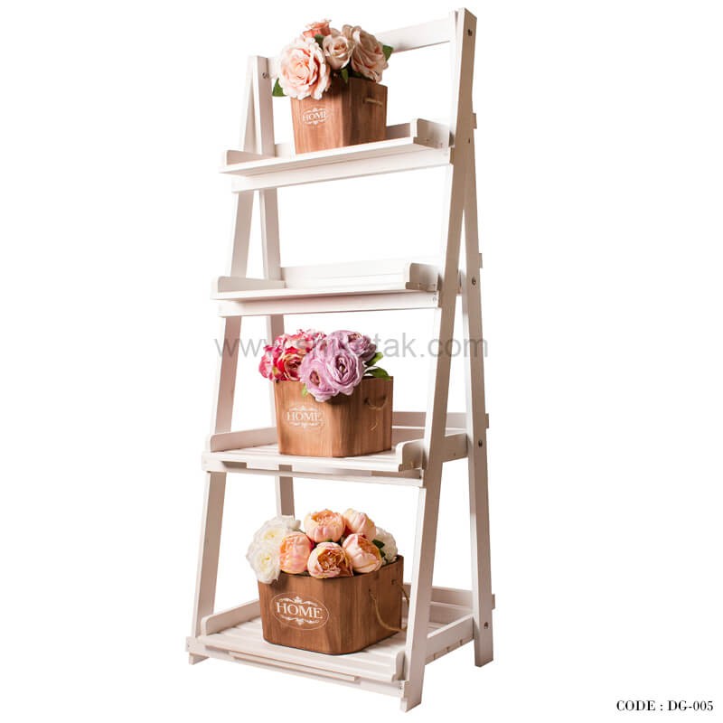 جا گلدانی ۴ طبقه چوبی تاشو سفید